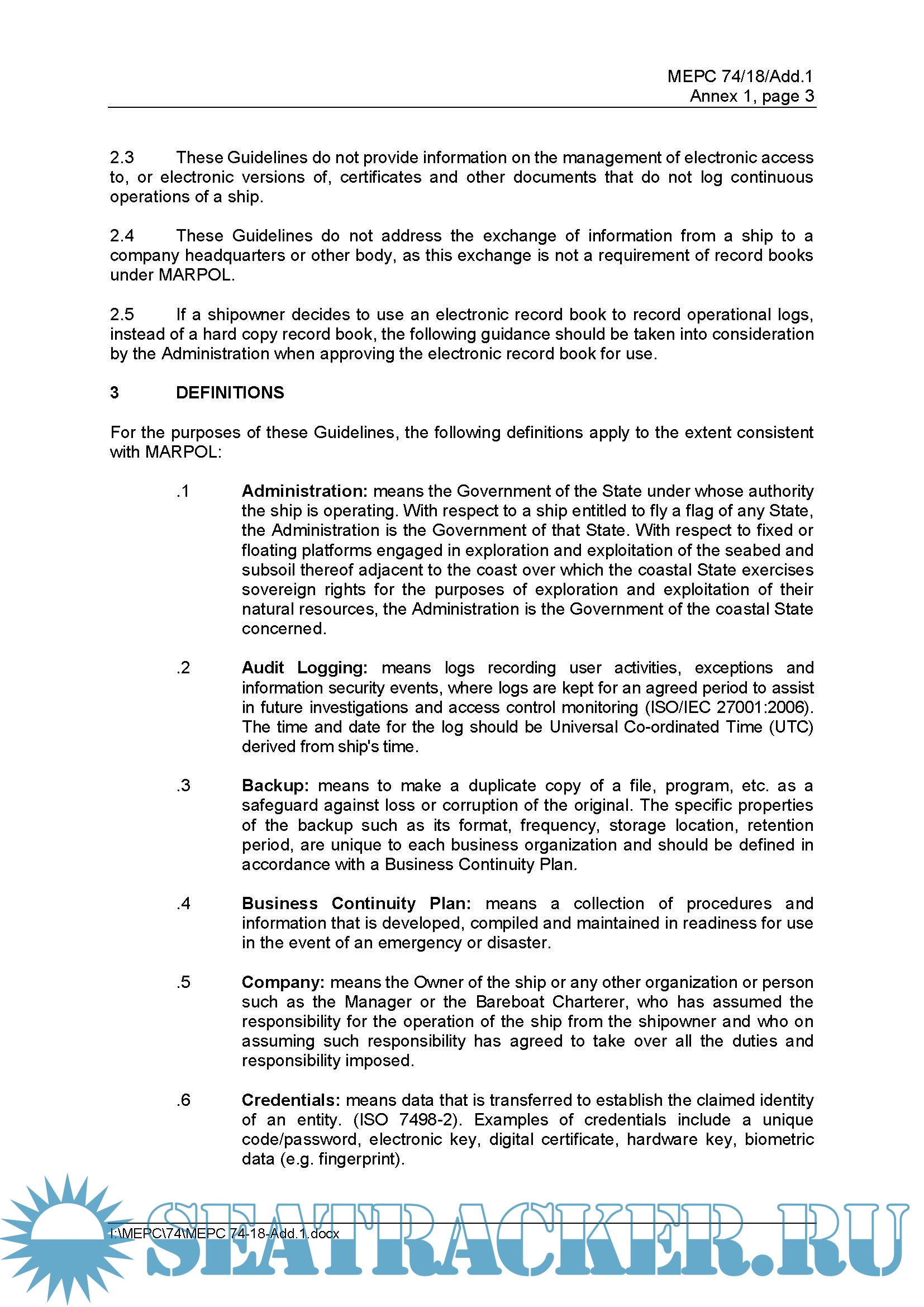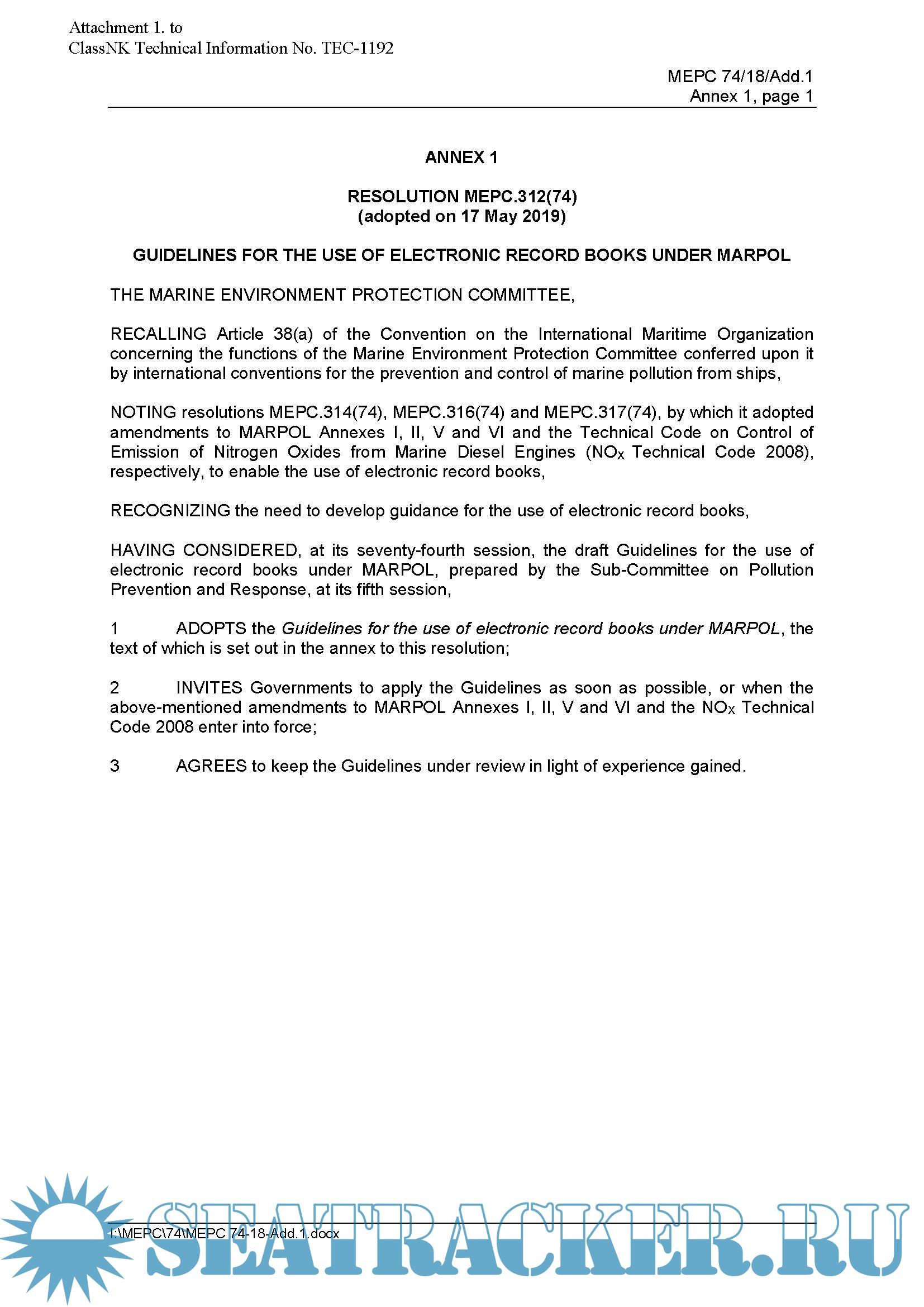 Year: 2019 Language: english Author: IMO Genre: Guide Format: PDF Quality: eBook Pages count: 10 Description: RESOLUTION MEPC.312(74) (adopted on 17 May 2019) GUIDELINES FOR THE USE OF ELECTRONIC RECORD BOOKS UNDER MARPOL