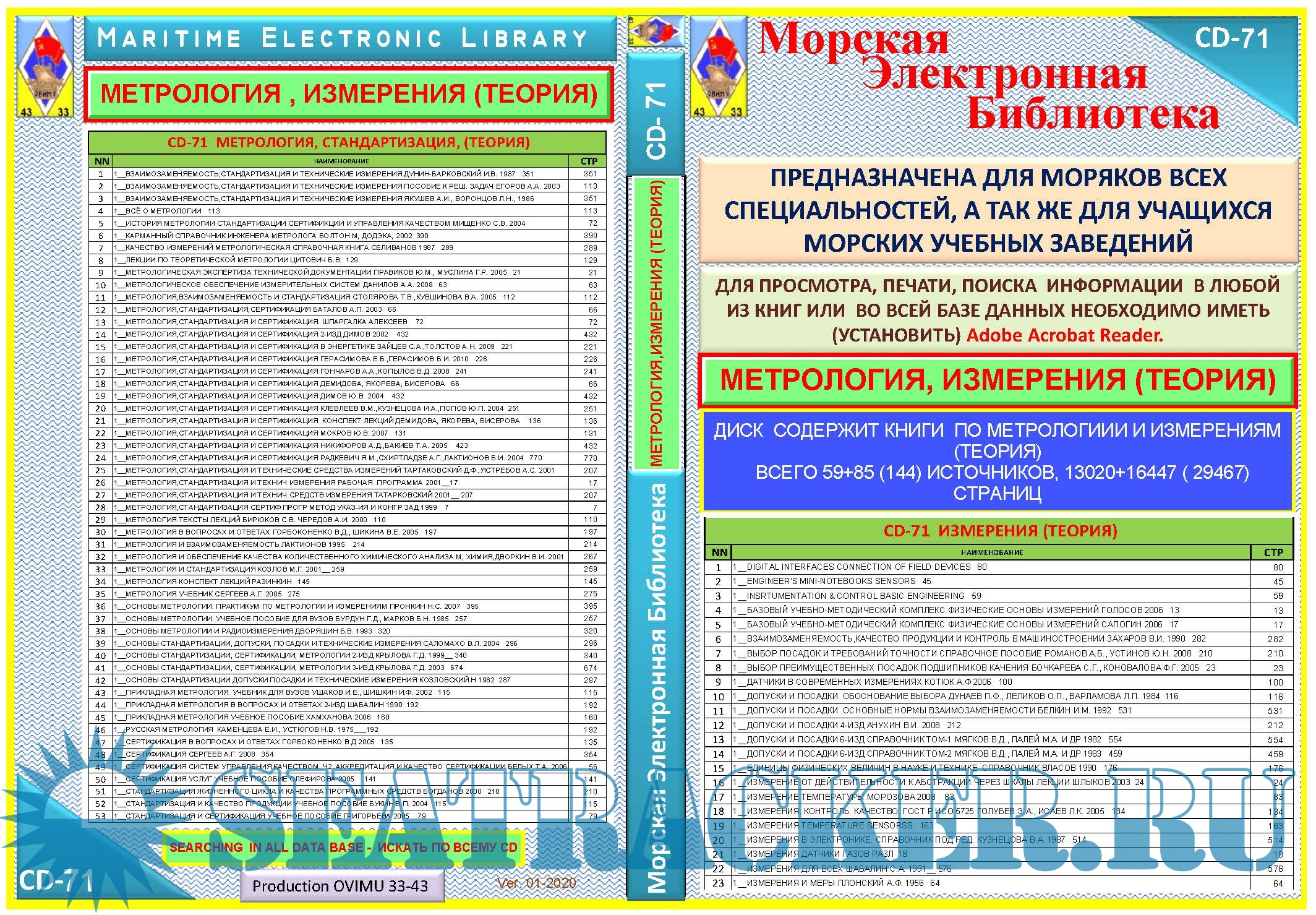 Год выпуска: 2020 Язык: русский Автор: ermo1956 Жанр: Техническая литература Издательство: OVIMU 33-43 Издание: ODESSA Формат: PDF Качество: Отсканированные страницы + слой распознанного текста Количество страниц: 29467 Описание: ДИСК СОДЕРЖИТ КНИГИ ПО МЕТРОЛОГИИ И ИЗМЕРЕНИЯМ (ТЕОРИЯ) ВСЕГО 59+85 (144) ИСТОЧНИКОВ, 13020+16447 ( 29467) СТРАНИЦ Доп. информация: Большинство книг взято с этого трекера, но преобразованы в pdf формат и распознаны как текст с возможностью поиска.