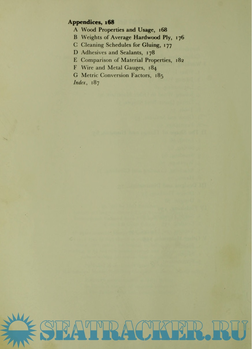 Year: 1981 Language: english Author: Saunders M. Genre: Manual Publisher: International Marine Publications Co ISBN: 0-87742-138-2 Format: PDF Quality: Scanned pages Pages count: 202 Description: Here is a complete, detailed and practical book for the yachtsman doing his own interior fitting out, whether his boat is built in wood, GRP, steel or any other material. In addition to useful advice on every aspect of interior design and lay-out, including ergonomics aboard a small boat, Mike Saunders gives the reader a valuable basic course in woodworking and discusses all materials employed: soft and hard woods, tools, glues and sealants, fastenings, paints and varnishes, and soft furnishings. Whether you are refitting the entire cabin or simply making additional stowage, this book will save you a great deal of cash and hours of work by steering you past the pitfalls and frustrations. The book is lavishly illustrated with detailed diagrams, half-tones, tables and a color chart of woods suitable for boat-work.