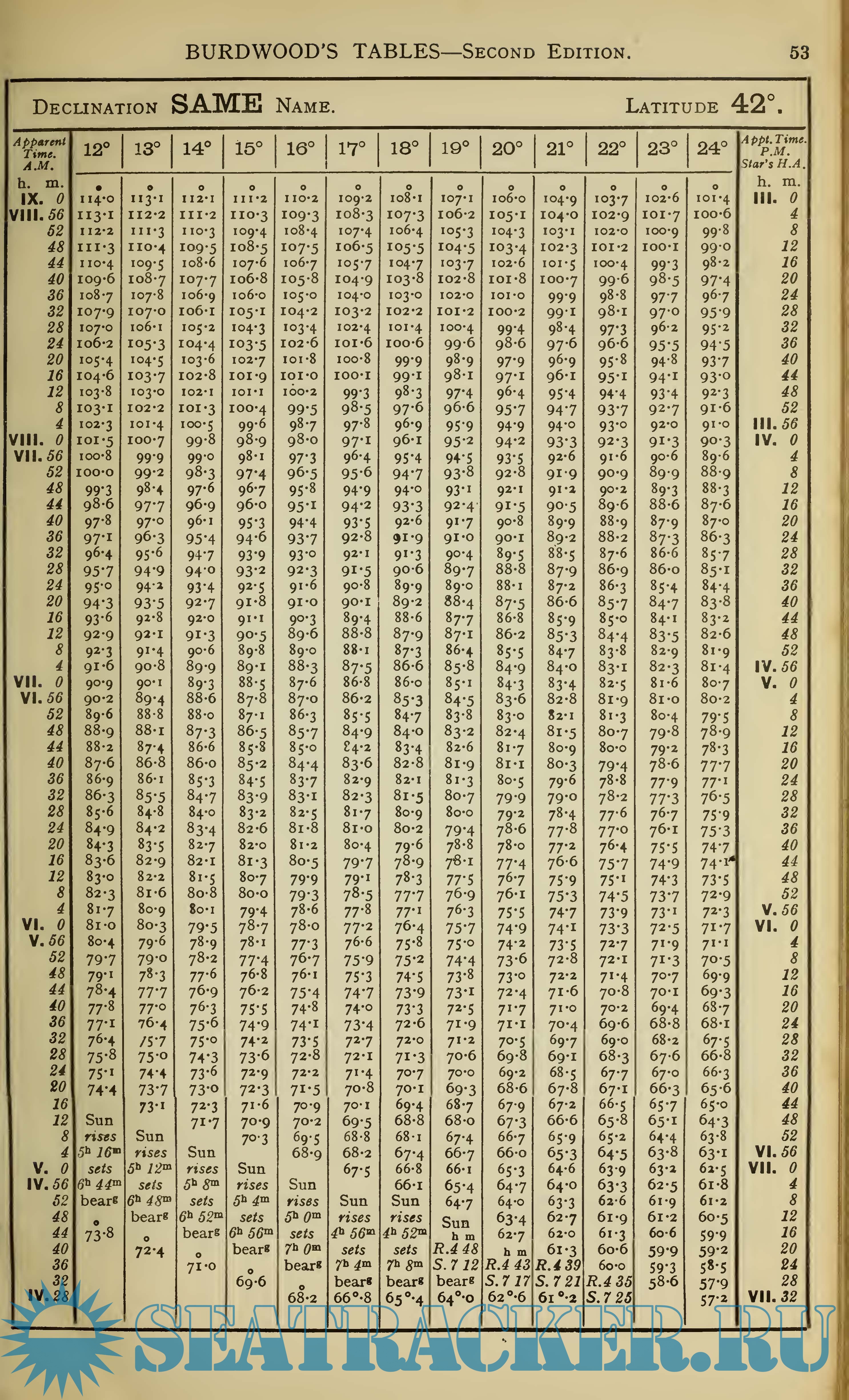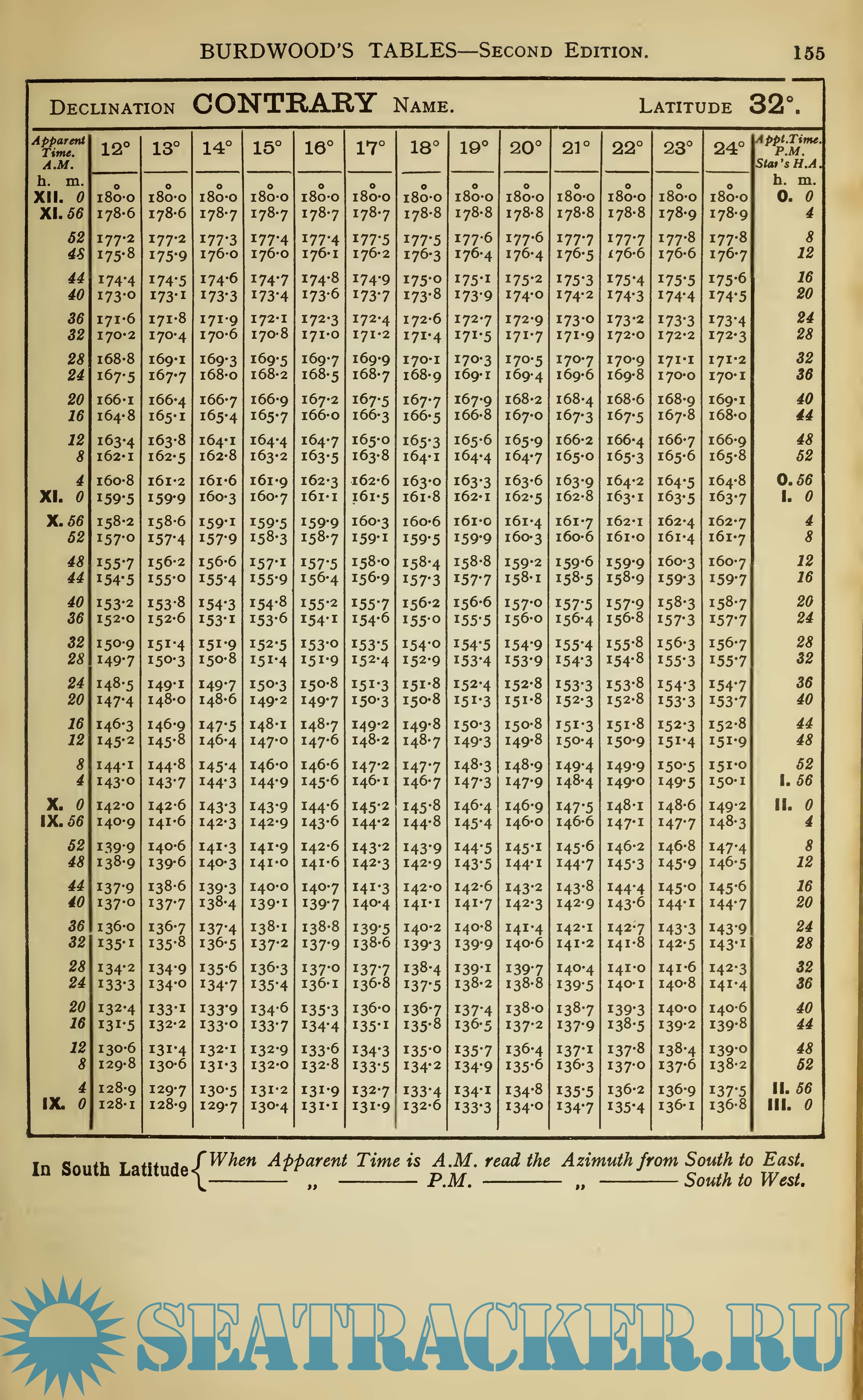 Burdwood's Tables Second Edition (DAVIS. 2) - Sun's True Bearing or Azimuth Tables