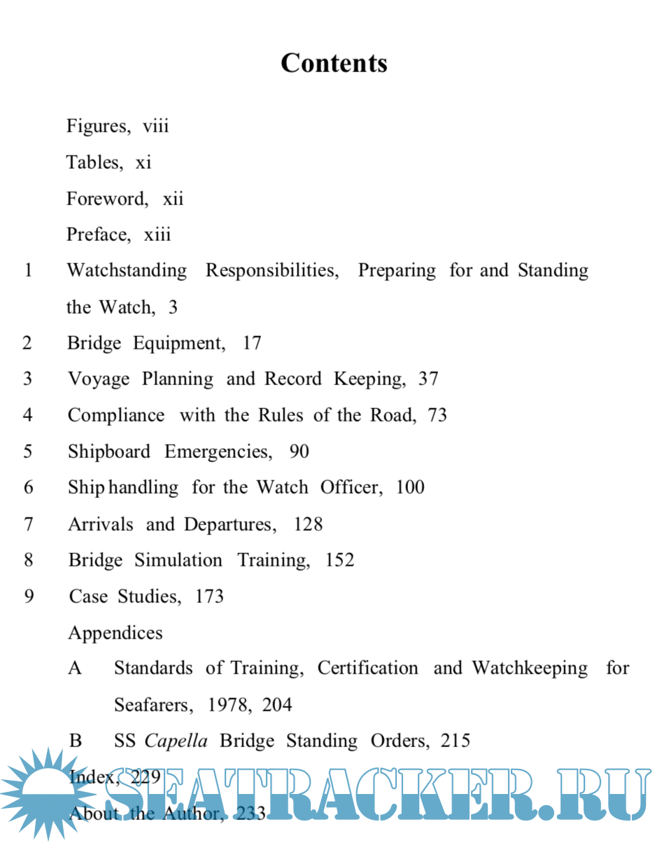Description: This book was written to help ease a cadet's or able-bodied seaman's transition to an officer in charge of a watch aboard a merchant vessel. An observer on the bridge of a merchant vessel can easily critique the performance of a watch officer (OOW) and visualize how much better he or she could stand the watch. It is only upon assuming the first watch at sea, with the license on the line, that the officer realizes the full weight of his or her responsibility for the safe navigation of the vessel. At the very least, the officer of the watch should be ready to comply with the requirements of the Standards of Training, Certification and Watchkeep- ing for Seafarers (STCW, 1978).