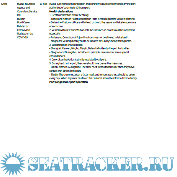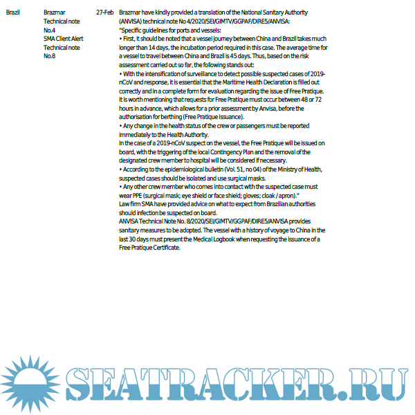 Year: 2020 Language: english Author: NORTH Genre: Guide Publisher: NORTH Format: PDF Quality: eBook Pages count: 21 Description: In response to the 2019-nCoV novel coronavirus outbreak, a number of countries, ports and organisations are publishing details of the measures being put in place.