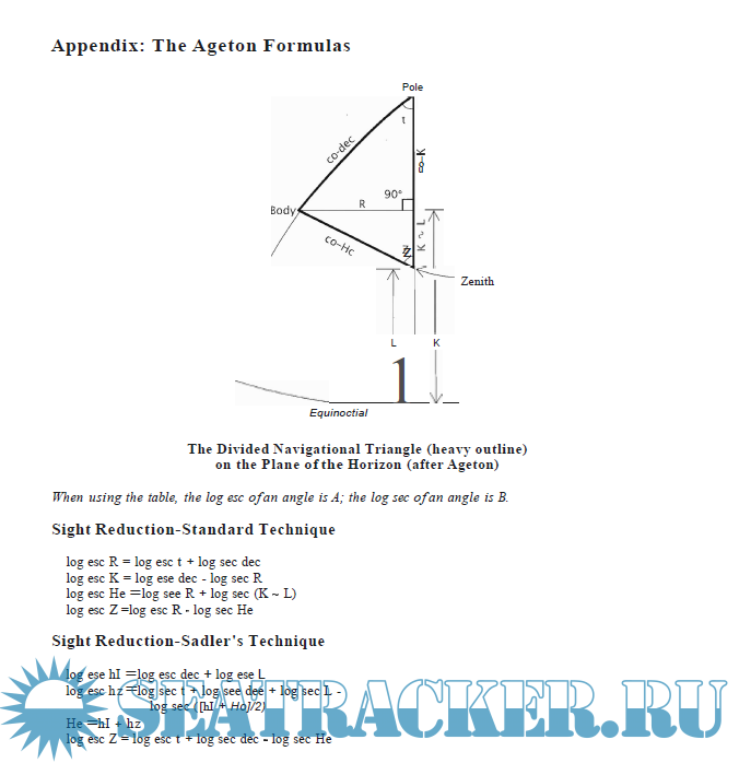 Description: An alternative method for Sight Reduction calculation, to be as simple as possible and avoid the use of big inspection tables.