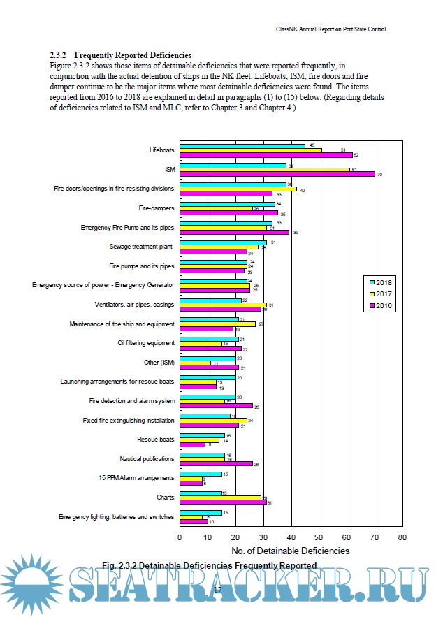 Year: 2019 Language: english Author: Class NK Genre: Research papers Format: PDF Quality: eBook Pages count: 57 Description: This Annual Report on Port State Control (PSC) summarizes deficiencies identified during PSC inspections carried out in various countries around the world. This report is prepared with the objective of building awareness with the present state of PSC and thereby improving future onboard maintenance and inspections, and as well as Safety Management System.