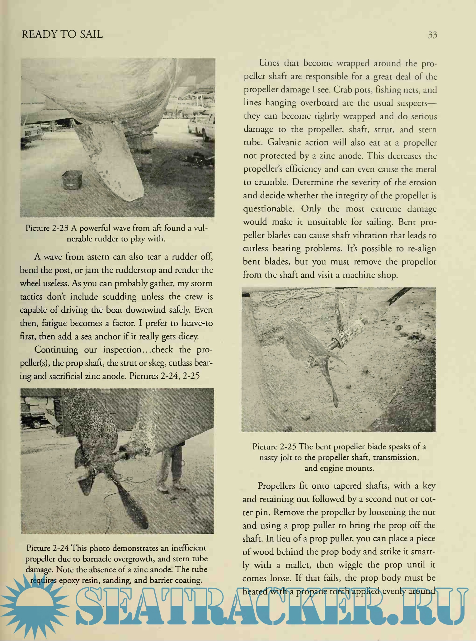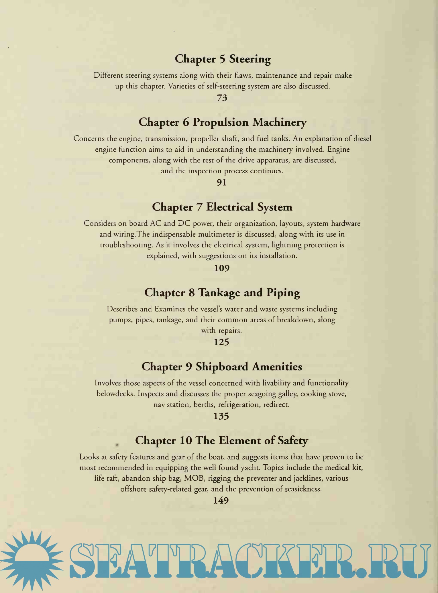 Year: 2007 Language: english Author: Mapes E. Genre: Guide Publisher: Offshore Publications ISBN: 0977777200 Format: PDF Quality: Scanned pages Pages count: 246 Description: It was my fate, in the fall of 1988, to meet a gentleman at a boat show in Harrison Township, Michigan. While showing me around his boat, he mentioned that he needed a hand in sailing her to the Caribbean to join the charter fleet. In that instant my sailing world began its expansion past cruising, racing, and delivery on the Great Lakes. Three weeks later, we were on the Detroit River in Enchantress, bound for Lake Erie and the Atlantic Ocean beyond. Leaving New York Harbor and the Ambrose Light was a momentous event. The anticipation of new adventures left me wondering what was out there, and whether or not I could handle it. Little did I know that just ahead were three days of Force 8 cold front winds and the accompanying 30-foot waves as the Gulf Stream collided head on with those northerly winds.There would be no meals, little sleep, and seemingly unending seasickness. Waves hissed as they lifted us to their crests, roaring as they swept past. The bow sliced through the dark water and threw spume aft toward the cockpit. Whipping through the rigging, the gale produced a crescendo of sound, forcing us to shout to be heard over the roar. When the breakers approached from astern, there were only seconds to duck and hold on as warm Gulf Stream water deluged the cockpit. The lightweight autopilot could withstand only a few hours of the punishment, so we took our turns at the helm. What had I gotten myself into? This was my introduction to offshore passagemaking. But what I discovered during those days on the edge was something unexpected. I found that once I got past the noise and cold, the nausea and the fear, the ocean was astoundingly beautiftil. Our perch on the crests of those towering waves provided a panoramic view of the vast blue sea with its highlights of white foam. The night sky was full of more twinkling stars than I ever dreamed existed, and the waves' shimmering phosphorescence reminded me of snow-covered landscapes on a bright winter's day. My senses were delighted by flying fish, dolphins, whales, and that wonderful watery roar as our bow carved through the water right on course for Bermuda. The immense power and benevolence of Nature were on full display. I discovered that our well-found yacht, properly maintained and stocked with the right gear, lent a calming sense of confidence and security. This reassurance allowed us to become more comfortable with the storm, certain that the boat could withstand whatever she had to. That unforgettable passage and the lessons it taught me became a basis for the inspecdon and preparation of every boat I sail. If a vessel is truly ready, she will deliver us.