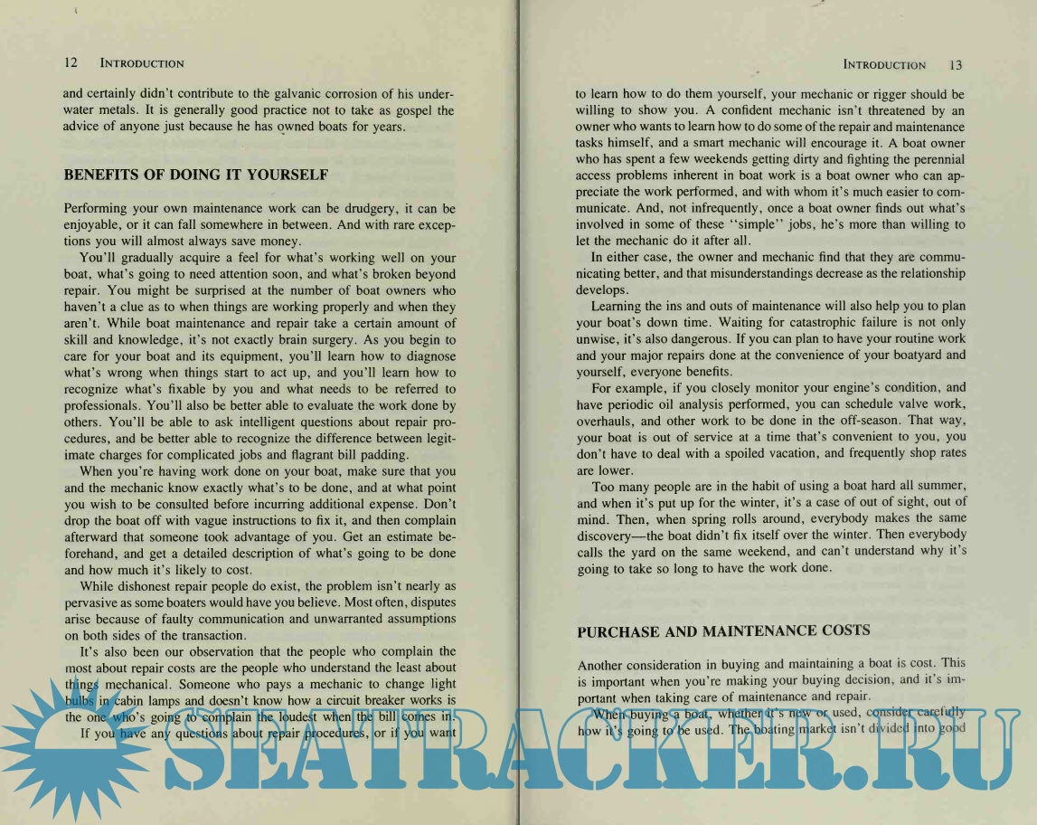 Year: 1990 Language: english Author: Thomas Reale and Michael Johnson. Genre: Guide Publisher: HEARST MARINE BOOKS Edition: First ISBN: 0-688-08338-2 Format: PDF Quality: Scanned pages Pages count: 264 Description: This practical guide is written for the non mechanic, and the authors begin by telling the reader what tools are needed for each job and exactly how to use them. The lively step-by-step instructions are easy to follow and are illustrated with dozens of line drawings, photos, diagrams, and tables. Your Boat Belowdecks successfully fills a gap in today's maintenance books by focusing exclusively on below decks systems, the "guts" of a boat—and the most crucial and potentially expensive to fix. In straightforward language, the authors explain how to troubleshoot, maintain, and repair engines, diesel fuel systems, batteries, filters, pumps, steering, stoves and heaters, and more. Beginning with the symptoms, they explain how to narrow down the possible causes, isolate the malfunction, and repair or replace the faulty part. Reale and Johnson carefully guide the reader through all the necessary steps and explain the purpose of each bolt or wire or fuse, cautioning against common mistakes and mishaps all the while.