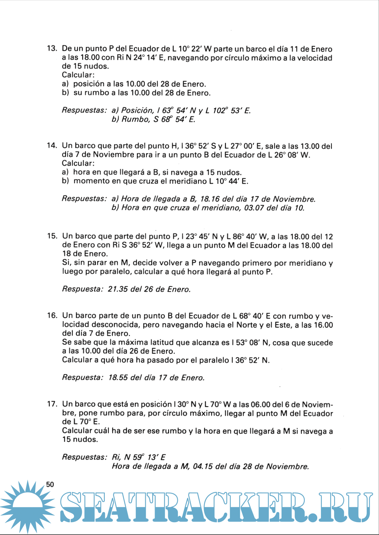 Problemas de trigonometría aplicados a la navegación