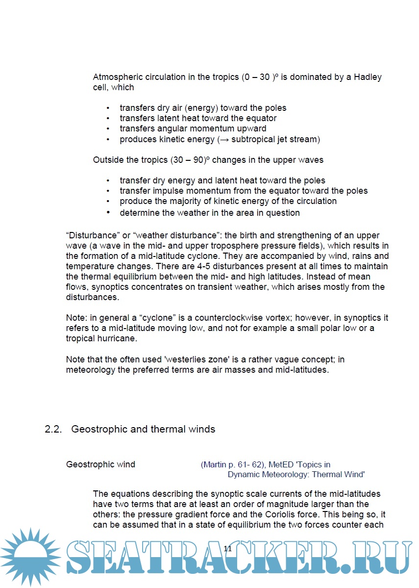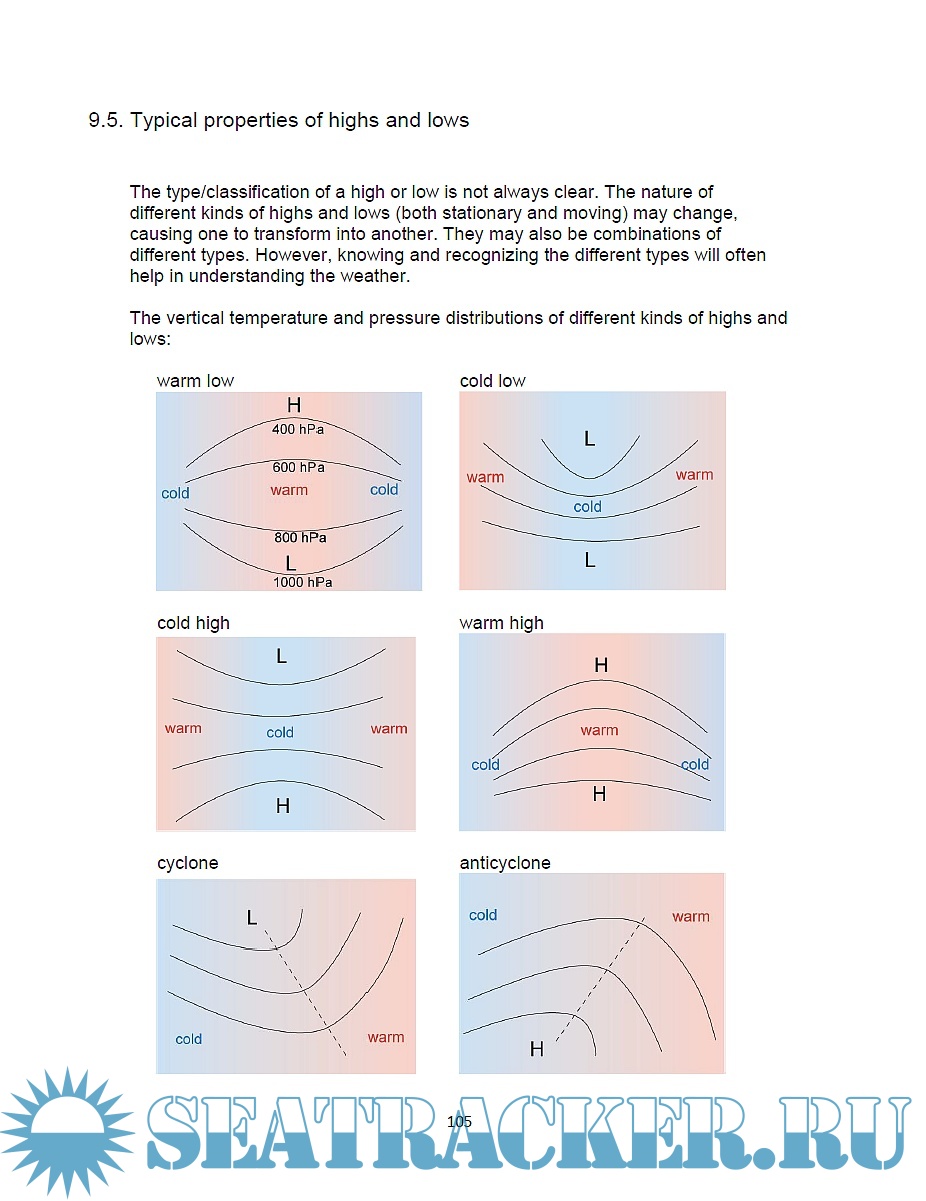 The manual first covers elementary and introductory aspects, such as the scales involved in synoptic meteorology, tropospheric circulation, air masses, geostrophic wind and jet stream. Then introduces different types of high and low pressures, their development, vertical motions and convective systems.