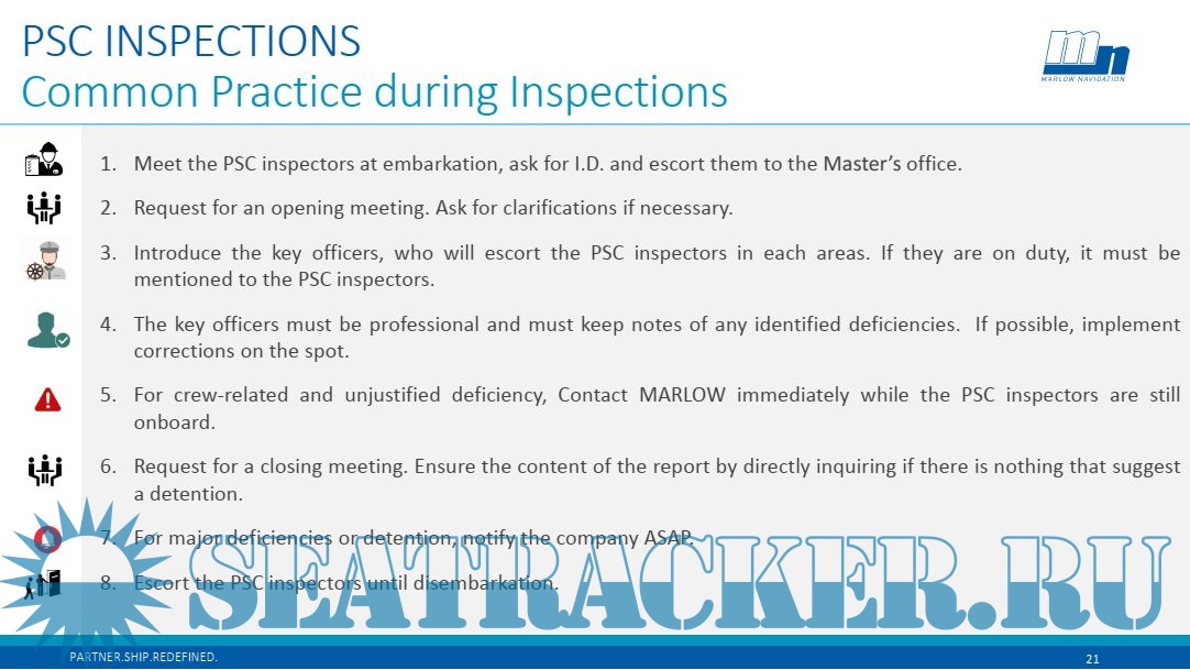 Description: Booklet prepared by Marlow Navigation crewing agency reflects problems which have been found during PSC inspections. There are some recomendations given to be ready for expected PSC.