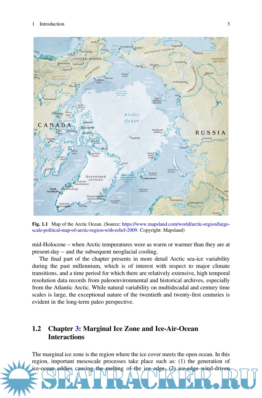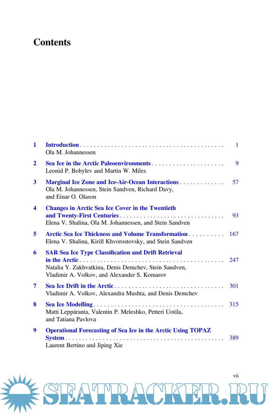 The chapters provide an extensive overview of the research results related to sea ice in the Arctic at paleo-scales to more resent scales of variations as well as projections for changes during the 21st century.