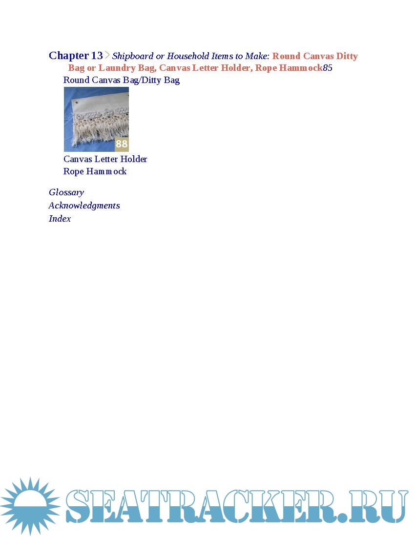 Don’t worry if you have never worked with rope in this way before--Barbara will take you step-by-step through the process, from choosing and measuring materials to putting the final touches on your nautical project. Projects are suitable for scout troops or afterschool activities as well!