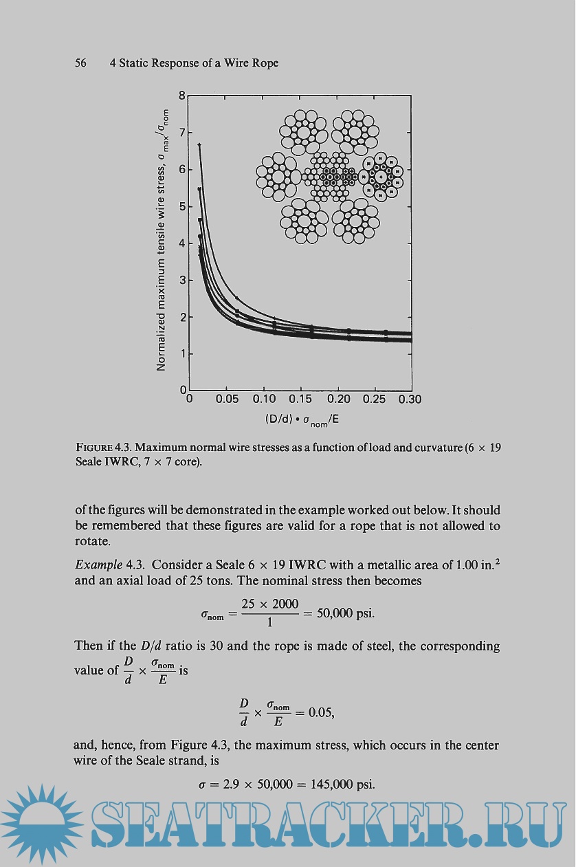 Description: This manual deals with the analysis of the static behavior of wire ropes under different loading conditions, and with the various theories of the fatigue. In recent years, considerable progress has been made in the development of models used to predict the response of ropes. Since there are so many parameters that can vary in the construction of a rope, such models can be used to determine the effects of possible variations of these parameters on the performance of a rope. Numerous examples are worked out to illustrate the theory, and the test results discussed. This second edition includes new chapters on tension and compression of a cord, fatigue, and assumptions and approximations used. Topics are treated with a clear language and many details of the solution steps are given; most of the cases are clarified by numerical examples. The book's aim is to be a comprehensive theoretical review of the mechanical behavior of wireropes, that can also be seen as a good handbook for those who are interested in practical design and evaluation of stresses in ropes with any geometry and cross-section.
