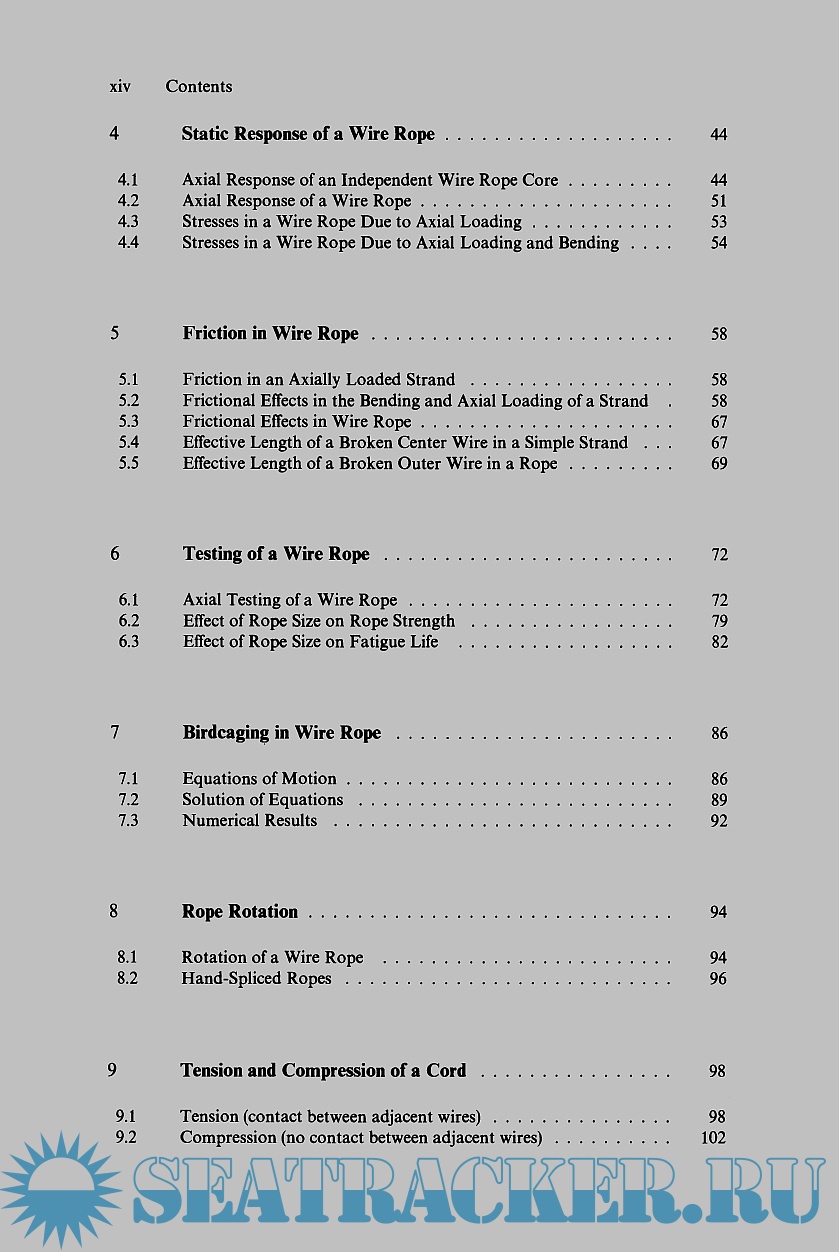 Year: 1997 Language: english Author: George A. Costello Genre: Manual Publisher: Springer Edition: 2nd ISBN: 978-1-4612-7361-5 Format: PDF Quality: eBook Pages count: 135 Description: This manual deals with the analysis of the static behavior of wire ropes under different loading conditions, and with the various theories of the fatigue. In recent years, considerable progress has been made in the development of models used to predict the response of ropes. Since there are so many parameters that can vary in the construction of a rope, such models can be used to determine the effects of possible variations of these parameters on the performance of a rope. Numerous examples are worked out to illustrate the theory, and the test results discussed. This second edition includes new chapters on tension and compression of a cord, fatigue, and assumptions and approximations used. Topics are treated with a clear language and many details of the solution steps are given; most of the cases are clarified by numerical examples. The book's aim is to be a comprehensive theoretical review of the mechanical behavior of wireropes, that can also be seen as a good handbook for those who are interested in practical design and evaluation of stresses in ropes with any geometry and cross-section.