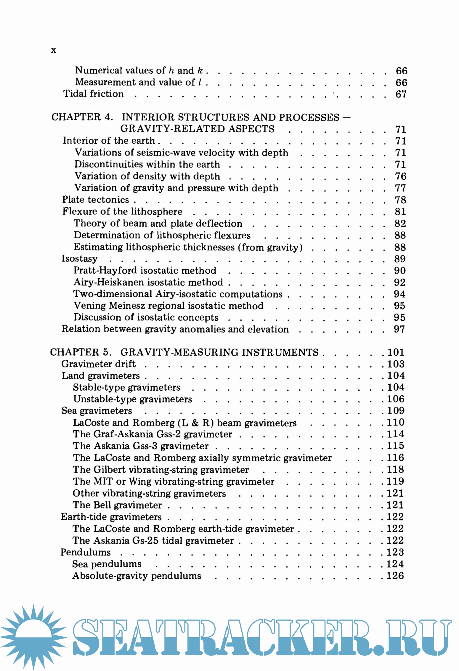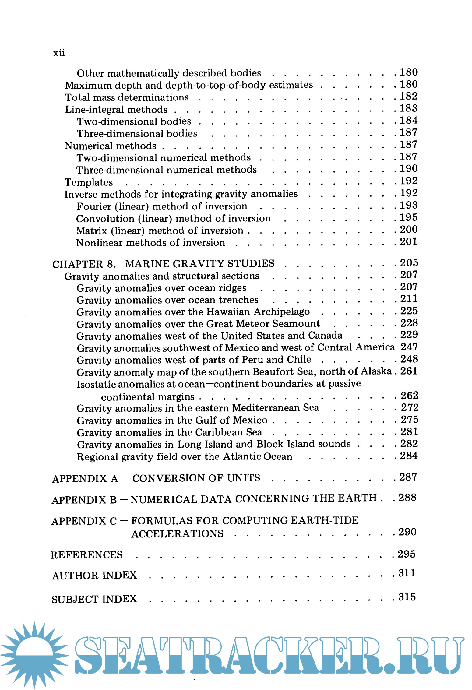 Year: 1978 Language: english Author: Dehlinger P. (Eds.) Genre: Handbook Publisher: Elsevier Science Ltd ISBN: 0444416803 Format: PDF Quality: Scanned pages Pages count: 314 Description: A valuable overview of marine gravimetry is presented in this book and it can serve as a useful summary reference volume or as a text for a course. The collection of regional gravity maps given in the last chapter is unique.