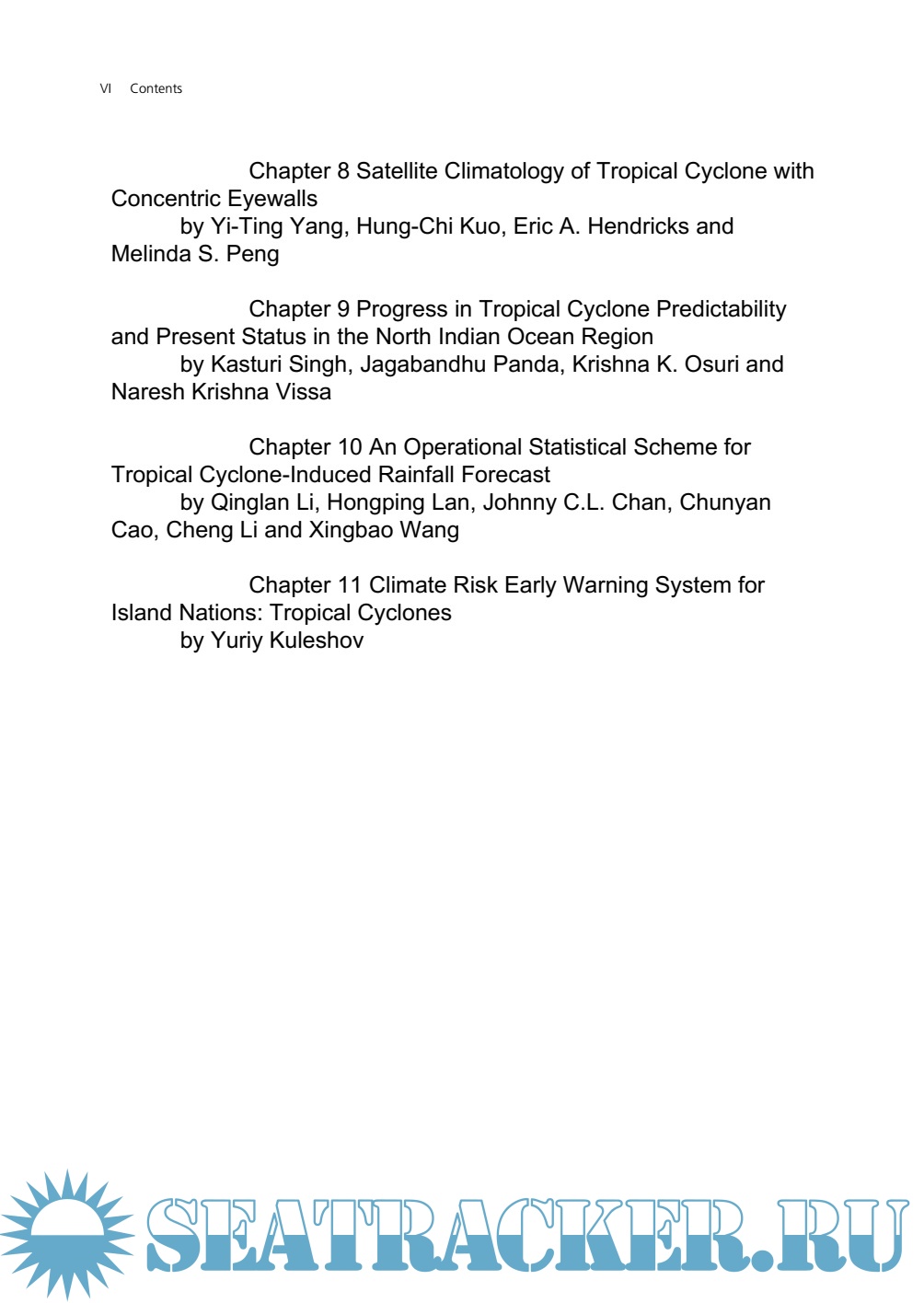 Description: Today, tropical cyclones continue to bring destruction, as well as disruption, to societies that are exposed to their threat. This book represents a compilation of recent cutting-edge research on tropical cyclones and their impacts from researchers at many institutions around the world. This book contains new looks at tropical cyclone dynamics, the use of satellite-based remote sensing in the detection and climatology of tropical cyclones, and the modeling and prediction of tropical cyclones as well as their associated impacts. This book would make a nice addition to any course on tropical meteorology highlighting topics of interest in recent research on this topic.