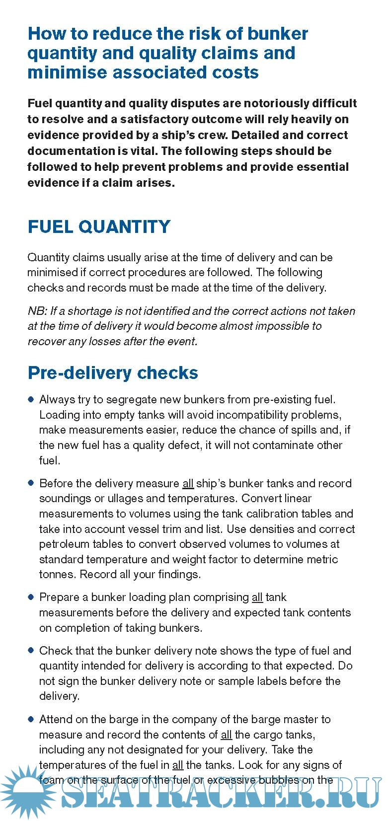 Description: The P&I publication addressing the reduction of the potential claims and costs associated with the bunkering. It is intended to provide the crew members and other interested parties with the information that would help them with reducing of the risks of both quality and quality claims and also with minimization of the associated costs.