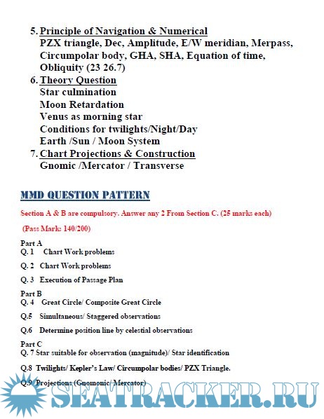 Past Question Paper sets for MMD India Chief Mates F.G. Phase I & II Examinations - Mercantile…