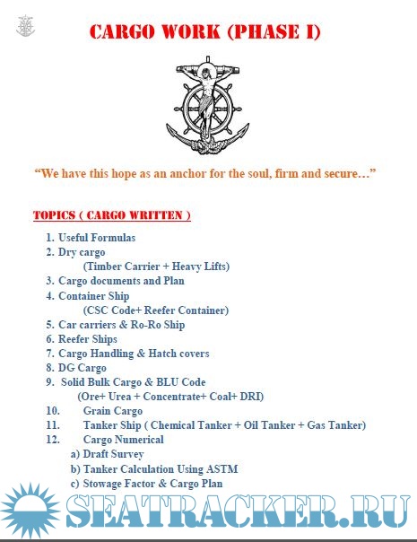Notes on Bridge Watchkeeping, Cargo Work, Marine Engineering, Maritime Law, Meteorology, Navigation, Navigational Equipments, Safety, Emergency & Stability
