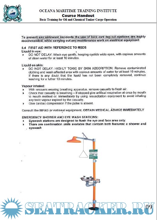 Year: 20xx Language: english Author: Oceana Maritime Training Institute Genre: Training courses Publisher: Oceana Maritime Training Institute Format: PDF Quality: eBook Pages count: 169 Description: AIM === This course provides training to candidates to be duly qualified under Section A – V/1-1 of the STCW code with specific duties and responsibilities related to cargo equipment on oil and chemical tankers, It comprises of a basic training programme appropriate to their duties, including basic training for oil and chemical tanker safety, fire safety measures, pollution prevention, safe operational practices and obligations under applicable law and regulations. The course covers the competence requirements as given in the table A-V/1-1-1 of the STCW Code adopted by the International Convention on Standards of Training. Certification and Watchkeeping for Seafarers, 1978 as amended in 2010. Objective ========= Provided they hold an appropriate certificate and are otherwise qualified in accordance with regulation Section A-VI/1 of the International Convention on Standards of Training, Certification and Watch keeping for Seafarers 1978, as amended, those successfully completing the course will be eligible to carry out assigned specific duties and responsibilities related to cargo or cargo equipment on Oil and Chemical Tankers. The trainee shall: • Be familiar with the equipment, Instrumentation and controls used for cargo handling on an oil and chemical tanker. • Have acquired greater awareness of the need of proper planning and the use of checklists involved in various cargo handling operations. • Have an enhanced awareness to apply proper and safe procedures at all times when carrying out the various operations on board oil and chemical tankers. • Be able to identify operational problems and assist in solving them. • Follow safety practices and protect the marine environment. • Be able to assist and co-ordinate actions during emergencies.