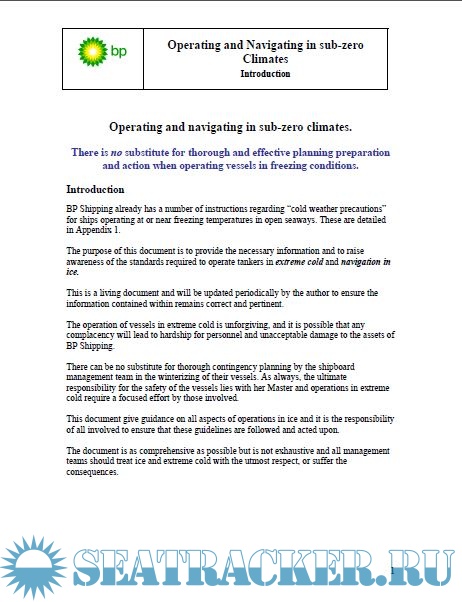Description: The purpose of this document is to provide the necessary information and to raise awareness of the standards required to operate tankers in extreme cold and navigation in ice.