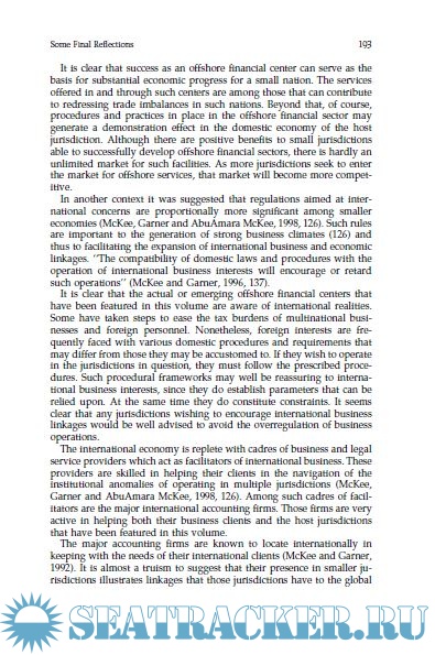 Description: The volume is divided into four parts. Part I beyond the current overview provides the general background or foundation for the specifics to follow. In it the positive functions of offshore financial centers are reviewed with special emphasis upon their hosting of international services. Care is taken to point out what attributes are needed by jurisdictions hoping to succeed as offshore financial centers. Examples of the involvement of the major accounting firms in such centers are also included.