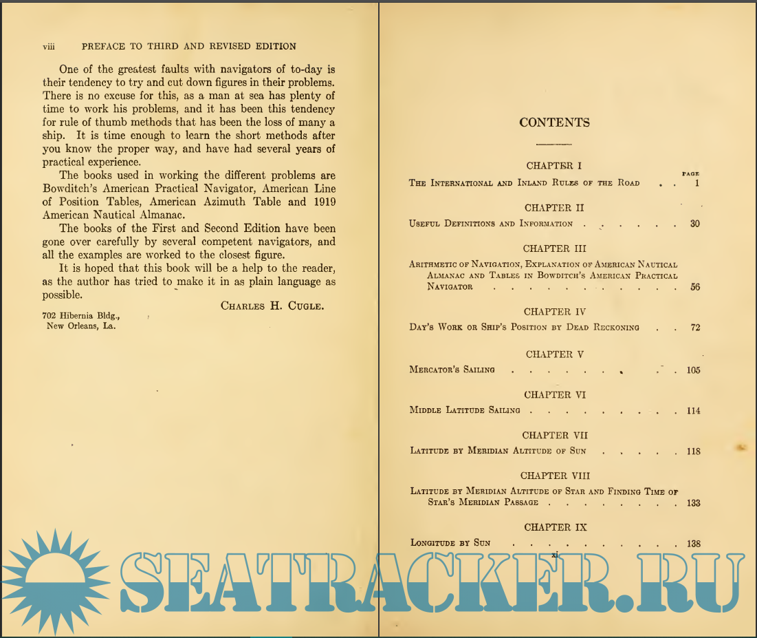 Year: 1919 Language: english Author: Cugle, Charles Hurst Genre: Textbook Publisher: E.P. Dutton Edition: 3 Format: PDF Quality: Scanned pages Pages count: 334 Description: 3rd and revised edition, corrected and revised by Bradley Jones. Property of Old Coast Guard Station, Virginia Beach, Virginia.