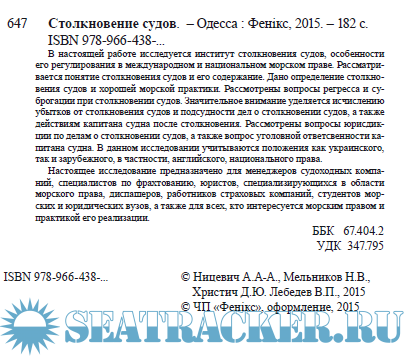 Год выпуска: 2015 Язык: русский Автор: Юридическая служба Interlegal. Формат: PDF Качество: Изначально компьютерное (eBook) Количество страниц: 183 Описание: В настоящей работе исследуется институт столкновения судов, особенности его регулирования в международном и национальном праве.
