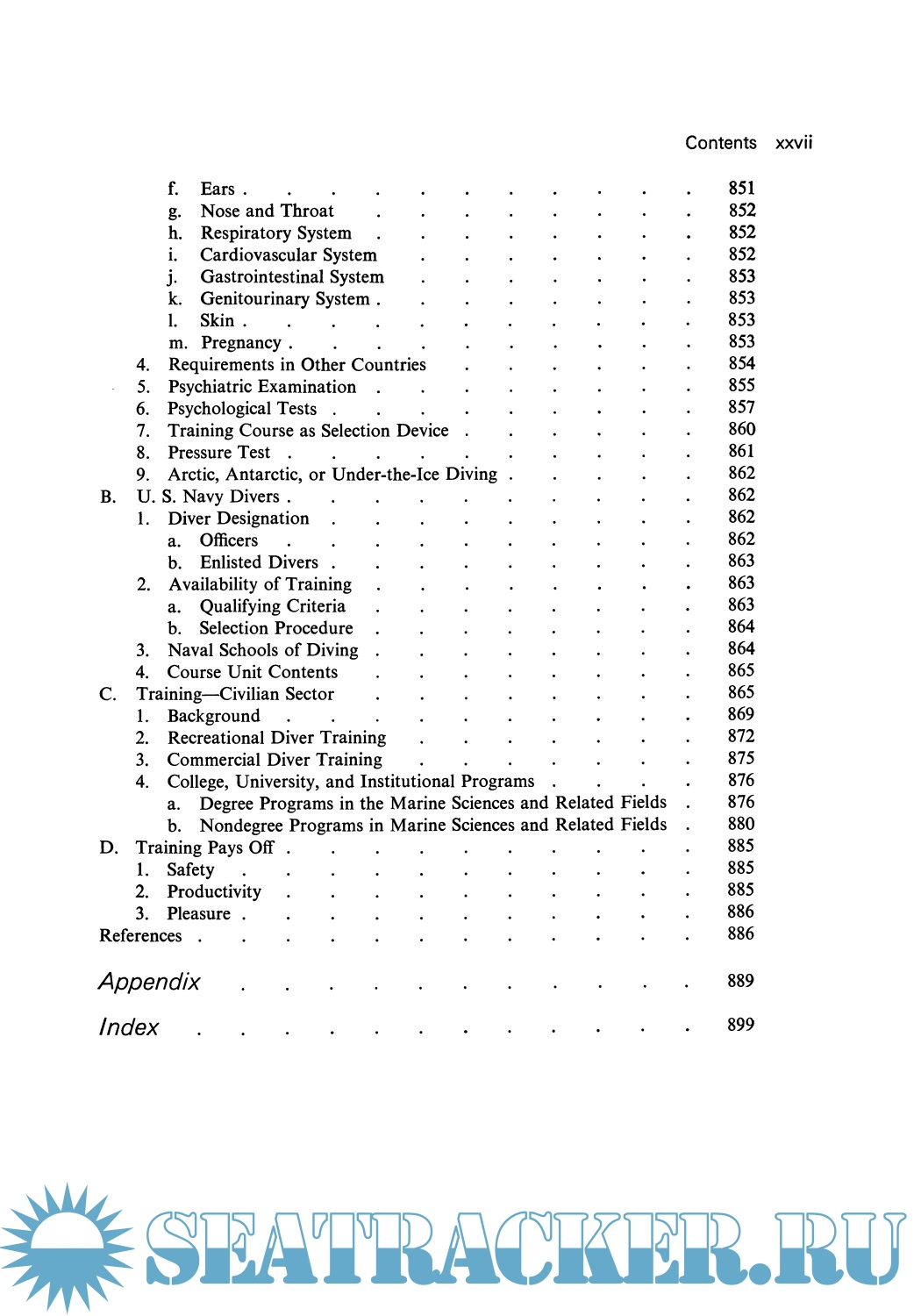 Year: 1976 Language: english Author: Shilling C.W. at all Genre: Handbook Publisher: Springer ISBN: 1468421565 Format: PDF Quality: Scanned pages Pages count: 929 Description: This handbook attempts to translate data on various parameters of man's capability in underwater and hyperbaric environments for those without a background in the life sciences. Accomplishing any multifaceted task requires team work, and effective team work depends on facile communication among all participants. To communicate properly, all parties must understand each other's problems and be able to speak a similar language. To this end we believe that this publication will go a long way in furthering the understanding and communication necessary for maximum achievement. The U. S. Navy has a fundamental interest in all types of activities connected with the ocean and is especially interested in the growing field of manned underwater and hyperbaric activities. Thus, the manuscript for this comprehensive book was developed under Office of Naval Research contract N00014-67-A-0214-0013 with The George Washington University. We acknowledge with appreciation the financial support and technical guidance for this undertaking by the Naval Medical Research and Develop ment Command of the Bureau of Medicine and Surgery as well as by the Engineering Psychology Program and the Physiology Program of the Office of Naval Research. JOSEPH P. POLLARD Director Biological and Medical Sciences Division Office of Naval Research vii Preface A need was felt for a book that would document the relationship of the human being to the underwater hyperbaric environment in such a way that the individual unfamiliar with the psychological or biomedical jargon could still understand and appreciate the information.
