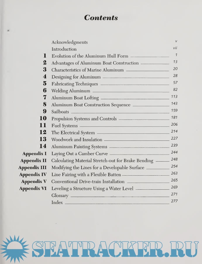 Year: 1993 Language: english Author: Stephen F. Pollard Genre: Handbook Publisher: International Marine Edition: First ISBN: 0-87742-377-6 Format: PDF Quality: Scanned pages Pages count: 294 Description: Aluminum may be the ideal boatbuilding material: it's light, economical, maintenance-free, nearly impervious to corrosion, less easily damaged and more easily repaired than any other material used for building boats. These facts aren't lost on the boatbuilding industry: more boats are built from aluminum than from any other material. Its ease of forming and working make aluminum an ideal material for mass production requiring relatively low-skilled labor. These same qualities make aluminum just as desirable for one-off builders as for mass producers. Compared with wood, far fewer skills and specialized tools are needed, and high-quality materials are more easily found. Building in fiberglass requires a climate controlled workspace, frequent exposure to hazardous chemicals, and, as one builder said, "a near immunity to itching." Welding aluminum is easier than welding steel a material second only to wood in popularity among backyard builders and the techniques are easier for beginners to master. The lightweight panels are also much easier for a solo builder to handle, and fewer tools are needed to work aluminum. Despite all these advantages, fewer small-scale builders work in aluminum than in any other material, even though the myriad advantages of aluminum are well known. Only a lack of information has kept aluminum from becoming the material of choice for backyard boatbuilders or small-scale professionals. Here, for the first time, is everything amateurs and small-scale professionals need to know to successfully build aluminum boats of almost any size or type. In Boatbuilding with Aluminum you will learn basic aluminum fabrication, welding, and lofting (plans are included for a 20-foot McKenzie River drift boat as an example). More advanced aluminum-forming techniques and large-yacht construction are covered in detail, from forming panels using explosives to installing engines, lead ballast castings, and much more. And you will learn from a master of the craft. Stephen Pollard has built hundreds of aluminum boats from large ocean racers to jet-powered river boats and has developed many of the techniques used in modern welded-aluminum boat manufacturing. This is a ground-breaking book the first one to bring together the backyard boatbuilder and small-scale professional with the ideal boatbuilding material.