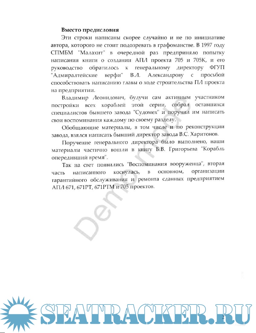 Год выпуска: 2007 Язык: русский Автор: Яновский В.Е. Жанр: История Издательство: Корректурный экземпляр Формат: DjVu Качество: Отсканированные страницы Количество страниц: 191 Описание: Автор, прошедший путь от помощника мастера на заводе "Судомех" в Ленинграде до главного инженера опытного производства, описывает историю создания торпедно-ракетного комплекса опытной АПЛ проекта 705, рассказывает о людях, которые создавали сложнейшие образцы вооружения, о проблемах и сложностях, встававших на пути.
