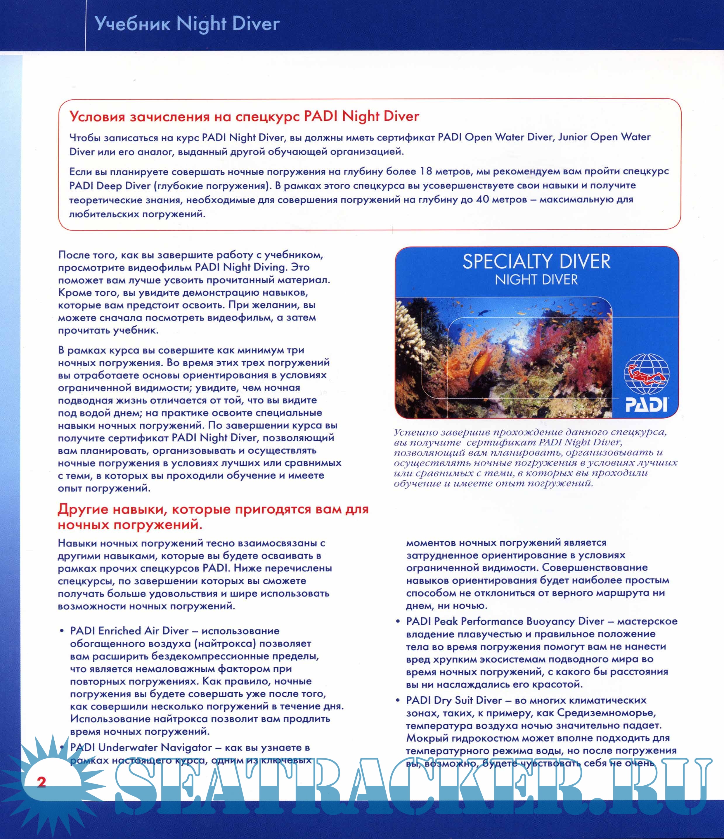 Учебник по спецкурсу PADI "Night Diver"