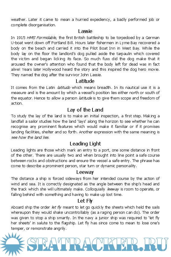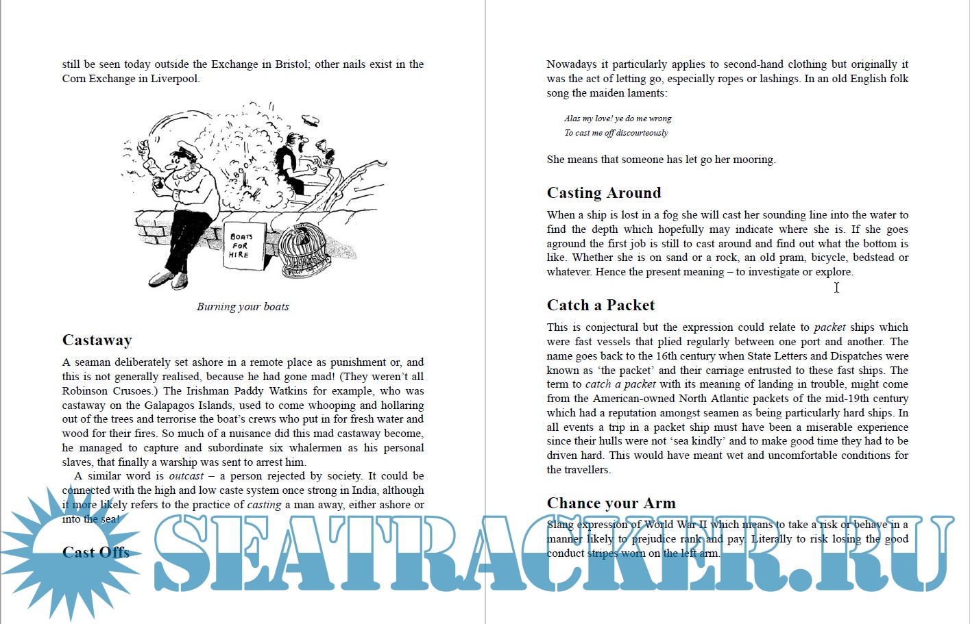 Year: 2007 Language: english Author: Beavis B., McCloskey R.G. Genre: Dictionary Publisher: Bloomsbury Publishing;Adlard Coles ISBN: 0713687495 Format: EPUB Quality: eBook Pages count: 96 Description: Most of us never realise how many words and expressions used in everyday English have a nautical origin. This fascinating and charming pocket book explains the seafaring beginnings of over 200 such phrases - colourful, bizarre and surprising - and how they came ashore. Just a few examples are: Chock-a-block Chance your arm Money for old rope Spic and span Push the boat out At close quartersThis entertaining book has been a popular title for boaters and landlubbers alike, ever since first publication in 1983. 'Good fun' Yachts and Yachting 'Entertaining, informative, educational and lots of fun' Multihull International 'An entertaining and informative little book' Motor Boats Monthly