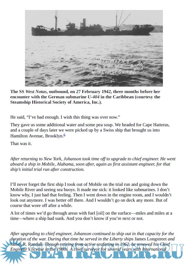 Year: 2014 Language: english Author: Gillen, Michael Genre: History Publisher: Mc Farland & Company, Inc. Edition: First ISBN: 978-1-4766-1887-6 Format: PDF Quality: eBook Pages count: 235 Description: As per the author, “this is an oral history of the U.S. Merchant Marine in World War II and, as such, most of what you will read here will be taken directly from transcripts of the voices of the seamen themselves on tape. To retain authenticity little has been changed, except where, to reduce confusion, a word or two has been added [in brackets]. Also, to reduce repetition, words have been cut in certain instances. But the “color” of the language has been retained, whether that be a certain regional inflection, or usage of an occasional indelicate expression at which some merchant seamen are known to be particularly skilled.”.