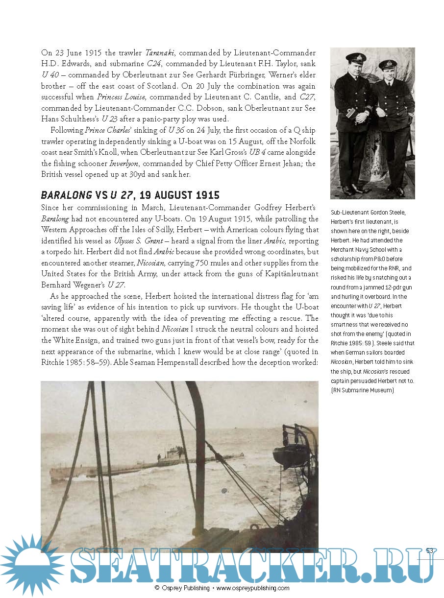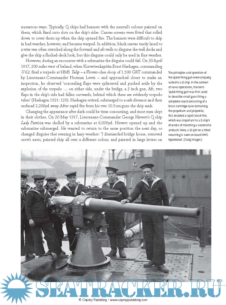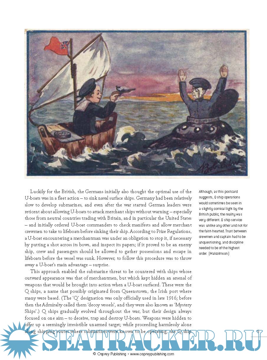 Year: 2014 Language: english Author: David Greentree Genre: Handbook Publisher: Osprey Publishing Ltd. ISBN: 9781782002864 Format: PDF Quality: eBook Pages count: 82 Description: Q ships came in all shapes and sizes – coastal steamer, trawler, barque, yacht or schooner – but all had to look harmless in order to lure their opponents to the surface and encourage them to attack. Armaments differed according to ship size; steamers commonly had 4in guns mounted amidships and in the bow, trawlers 3-pdrs and sailing ships 12-pdrs. Those who served on Q ships had to accept that their U-boat opponents would be able to strike first. Q ship captains kept ready a 'panic crew', which was trained to act out an elaborate evacuation to convince the U-boat commander that the ship was being abandoned by its crew. The Q ship captain would remain behind with a handful of other crewmen manning the guns, which remained hidden until the most opportune time to unmask and engage the U-boat. The Q ship concept had emerged early in the war when no other method seemed likely to counter the U-boat threat, and flourished until new technologies and tactics were developed, tested and implemented.