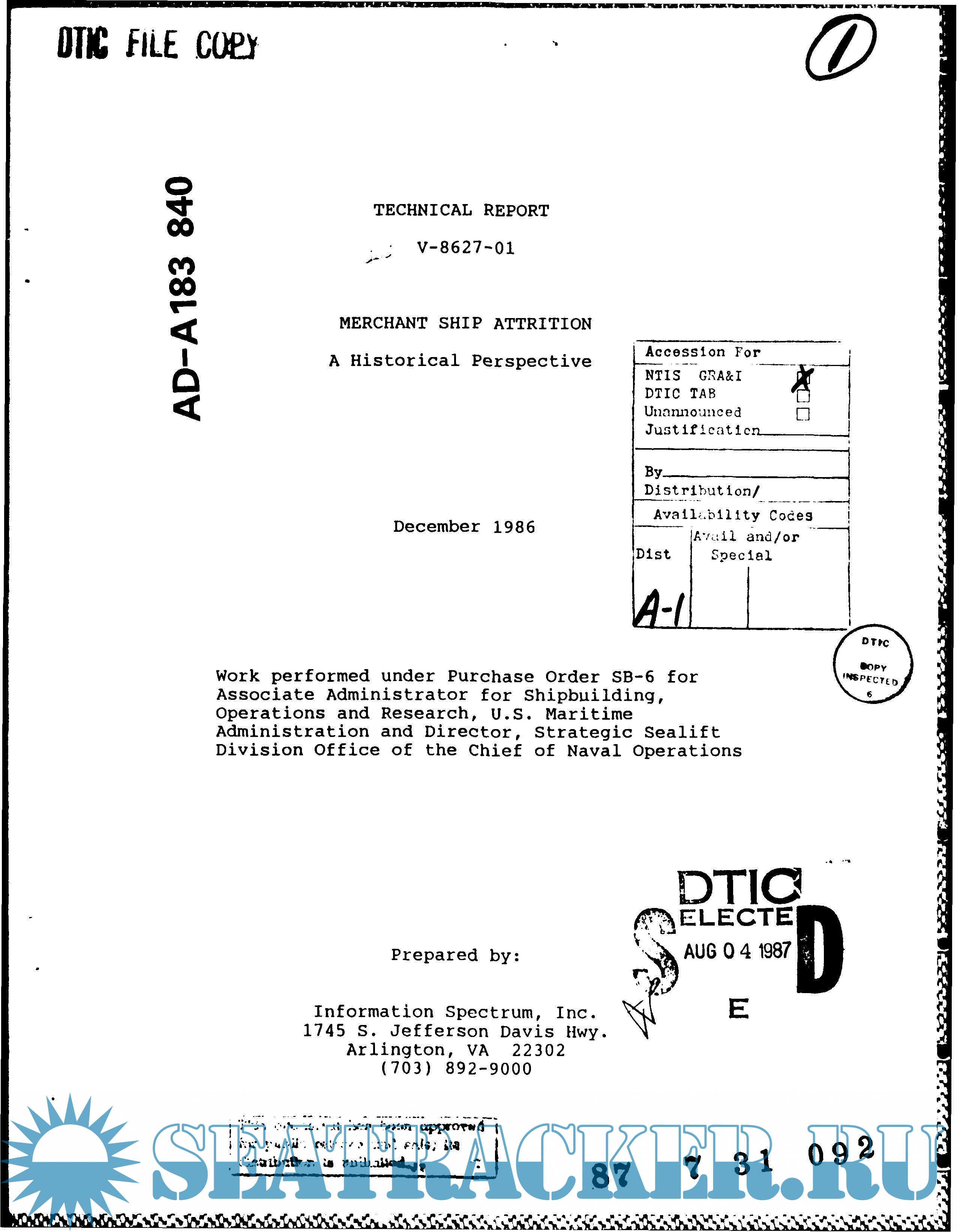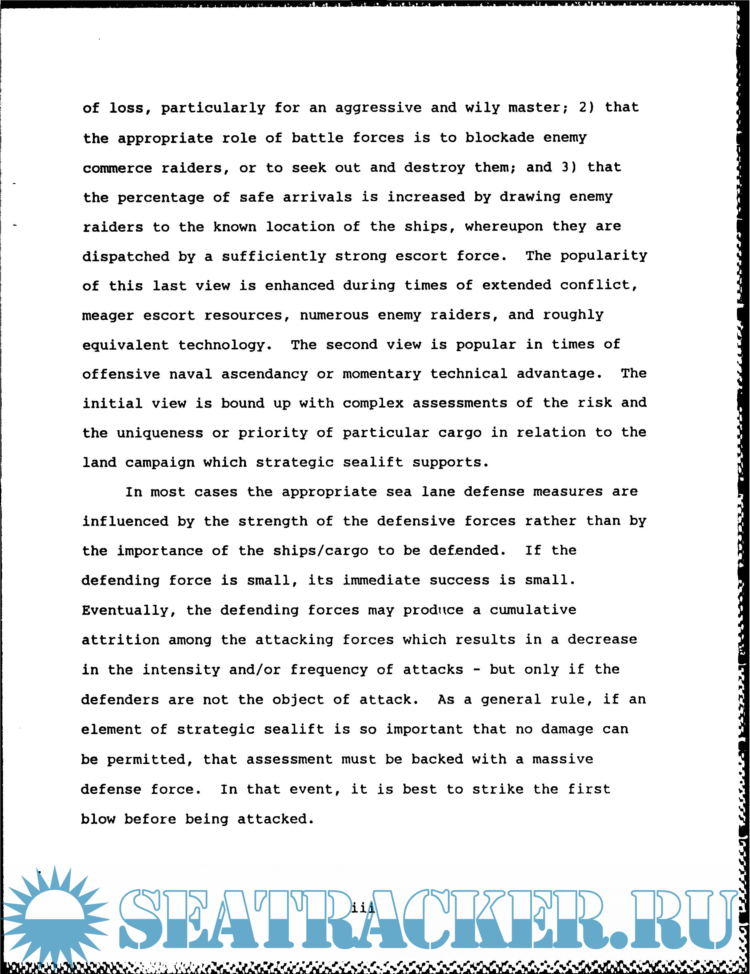 Year: 1986 Language: english Author: Information Spectrum Genre: History Format: PDF Quality: Unknown Pages count: 51 Description: War is dynamic, with each party to the conflict seeking an advantage to achieve his own ends, frustrate those of the enemy, decisively defeat or demoralize the enemy's battle forces, or prevent the enemy from gaining a decisive advantage. An anti- SLOC campaign is basically a war of attrition, except in a few cases of vital, timely, or irreplaceable military cargo. It presumes a strategy which makes provisions for a long, drawn-out struggle involving the classic move and countermove of tactics, technology, and forces.