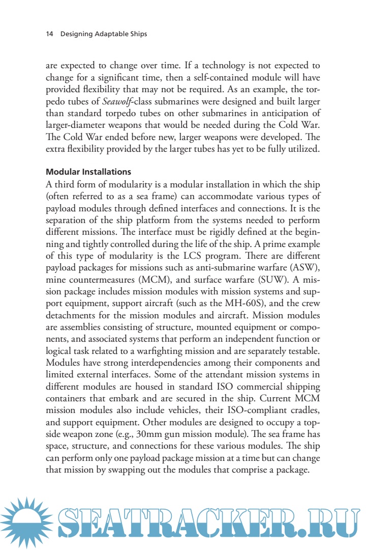 Description: In the face of challenges to acquire and support the numbers and types of ships needed to meet national security requirements in an environment of rapid change and shrinking defense budgets, this report explores the U.S. Navy's options for extending the service lives of operational ships by adopting the concepts of modularity and flexibility in ship design. These concepts can help to mitigate the risks of uncertain future missions and technologies to which ships will need to adapt, as well as potentially reduce modernization costs and/or initial cost.