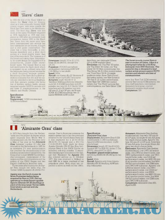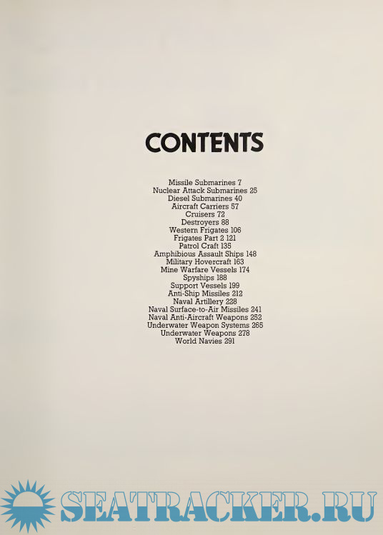 It shows and describes the capabilities of submarines, aircraft carriers, cruisers, destroyers, frigates, patrol craft, hovercraft, missiles, anti-aircraft weapons, and underwater weapon systems currently used by the world's navies.