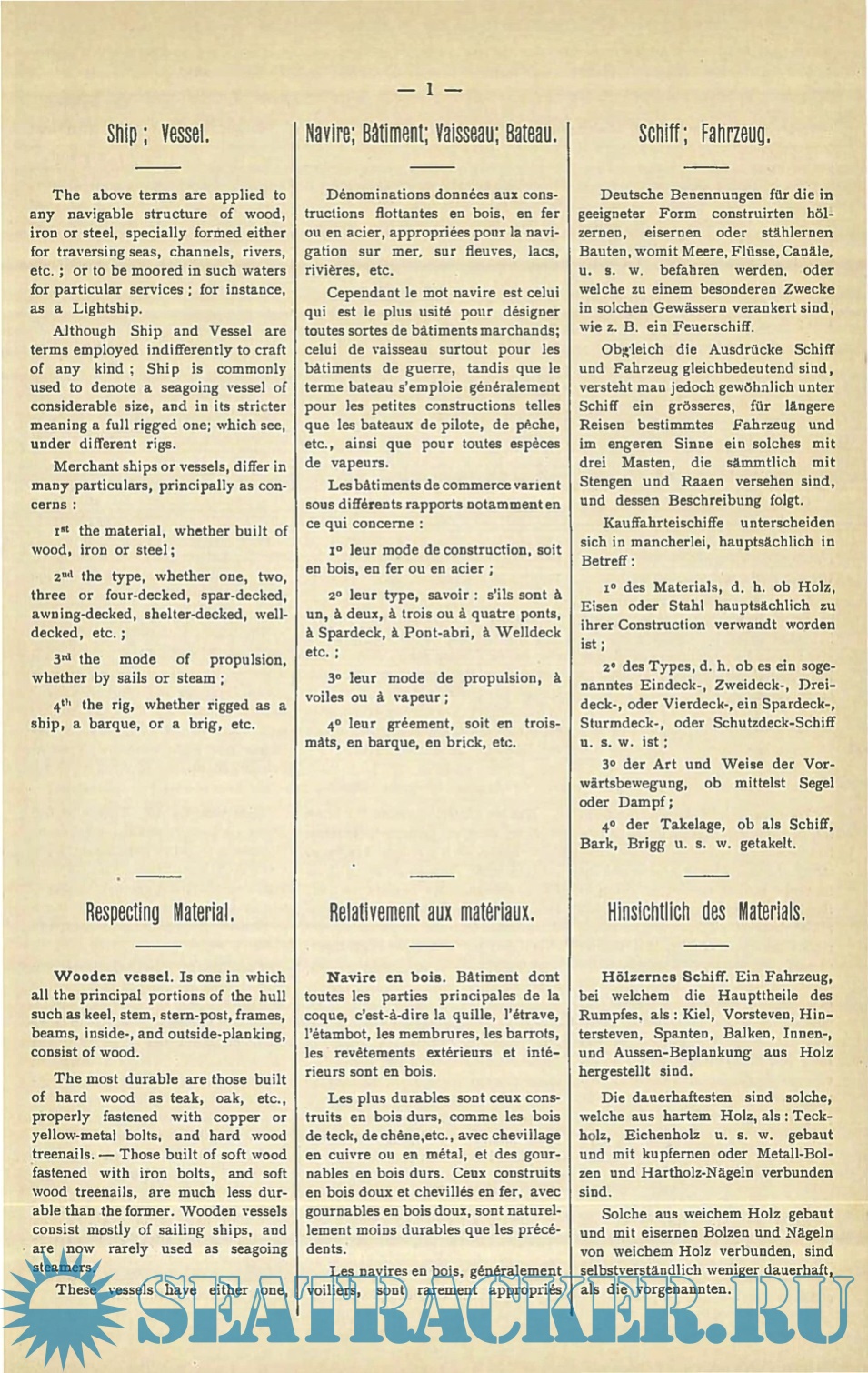 Year: 1894 Language: english/french/german Author: Paasch H. Genre: Dictionary Publisher: Eckardt & Messtorff Format: PDF Quality: Scanned pages Pages count: 797 Description: Captain Heinrich Paasch was the first to recognize the complexity and variety in marine vocabulary and technical terminology and the inherent need for a cohesive classification of nautical terms. Equipped with over thirty-five years of seafaring experience, including as a sailor, captain, and as a Surveyor to Lloyd's Register, Paasch sets out, chapter by chapter, an exhaustive explanation of all the principal parts of a ship's structure and equipment. He describes the main types of steam and sailing vessels; wooden and iron hulls; propulsion machinery; anchors and related equipment; masts and spars; standing and running rigging, as well as sails, tackle, blocks and ropes. He concludes with knots, bends, hitches, and splices and finally provides a listing of standard measurements.Paasch's stated intention to describe a ship literally “From Keel to Truck” has been widely applauded as has his inclusion of the equivalent terms in French and German alongside the English. Each section is accompanied by dozens of high-quality line engravings to accompany the text and illustrate the terminology and concept described. First published in 1885, and an invaluable resource ever since, Captain Paasch’s dictionary is both a full encyclopedia and an unequaled introduction for anyone interested in steam and sailing ships, life aboard a ship, engineering, or simply understanding the language. Additional info: Paasch's illustrated marine dictionary - Originally published as 'From Keel to Truck' - Paasch H. [2014, EPUB] -