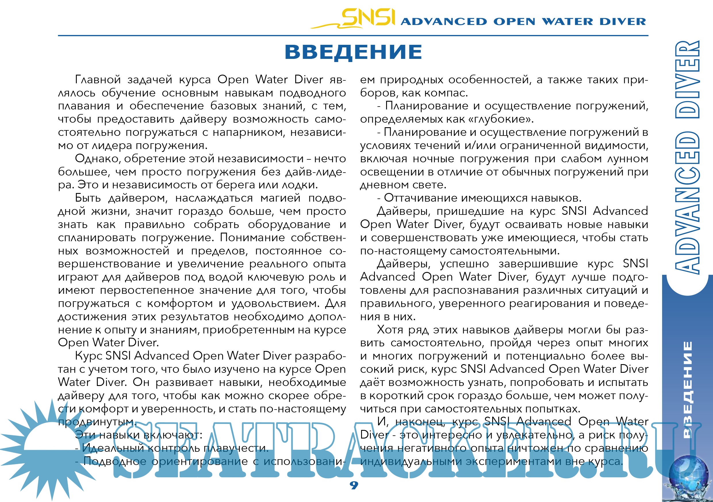 Учебник к курсу "Advanced Open Water Diver" SNSI