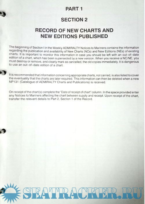 • Audit pages to record receipt of Weekly Notices to Mariners, New Charts and New Editions