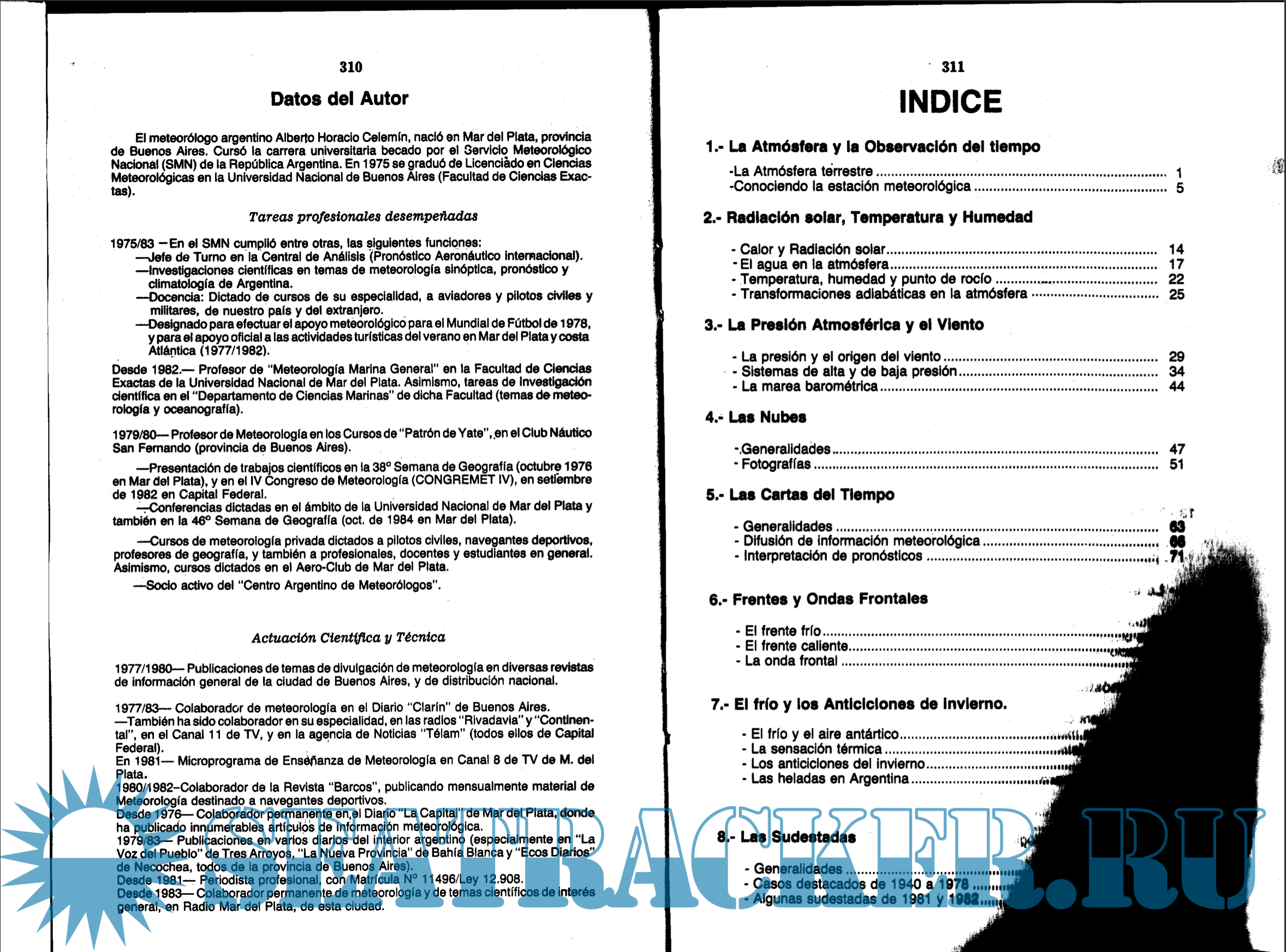 The title of this work clearly expresses the meaning that the author has wanted to print to his book, making it a true manual, which enables the reader to enter into practice in the study of this appealing discipline. It begins with a simple description of the atmosphere from which, introducing in each chapter a new element, it comes to the evolution of time and the exciting forecast. Of utility to all those who, by their prophesying or activity, are in dependence on atmospheric weather, "Practical Meteorology" comes to fill a gap in the national bibliography. For the clarity of the text, profusion of illustrations, and the special layout of the work, it is an indispensable daily basis for consultation and has been adopted as header book in the most serious nautical courses in various institutions.
