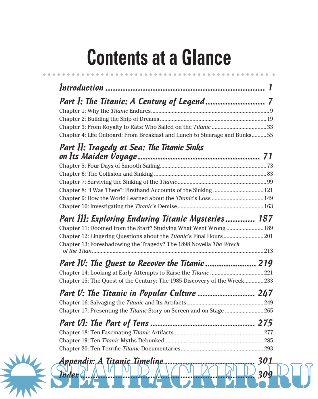 Description: The Titanic For Dummies paints the whole picture of the most famous maritime disaster. It examines the building of the ship, life onboard during its maiden voyage, tragic decisions made that fateful night, the discovery of the wreck, and the many controversies that have emerged in the century since the sinking. Information includes: