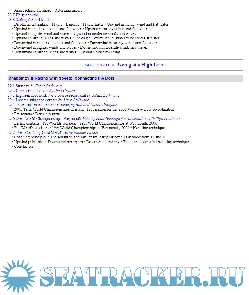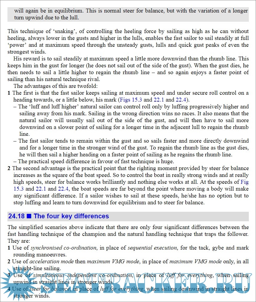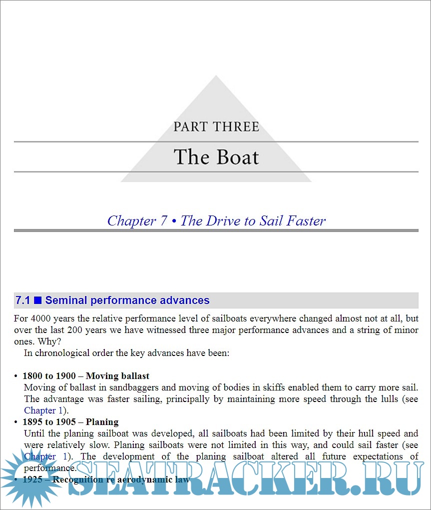 Year: 2013 Language: english Author: Frank Bethwaite Genre: Manual Publisher: Adlard Coles ISBN: 978-1-4729-0130-9 Format: EPUB Quality: eBook Pages count: n/a Description: High Performance Sailing is one of the very few books that can be considered as the bible of racing sailors. Hundreds of pages of useful data on the wind and its behavior on a micro-scale, on the boundary layers, on the rigging and on the tricks to improve performance, on sails trim and boat handling. A well documented analysis on the performance of the boat and how to improve it. By means of extensive research, and working with sailors of different racing calibre, the author analyses how to harness the apparent wind for increased speed and better position on your rivals.