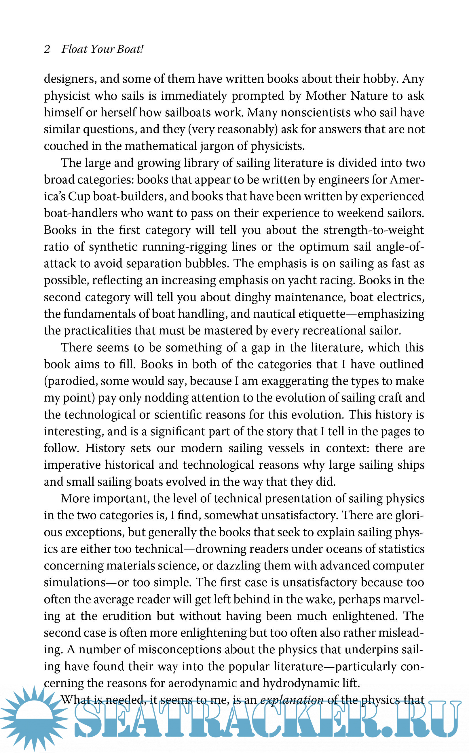 Description: An estimated 4.1 million people in the United States participate in recreational sailing. Yet the large library of sailing literature leaves many of them high and dry. On one side are technical guides for America’s Cup boat-builders; on the other, simplistic books for weekend sailors with little interest in science. In Float Your Boat! professional and amateur boaters alike will find intelligent and understandable answers to such questions as: What were the key innovations that made sailboats more efficient? How do you increase the speed of a boat? How do sailboats travel into the wind? Why are so many explanations of sailing so wrong?