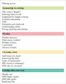 Description: he book is a complete, user-friendly, hands-on manual useful as an entry level text for beginner, but is also well detailed and thorough to be useful for the advanced sailor. Topics cover in detail dinghy launching, helming, trapezing and capsizing, racing tips, techniques and tactics, as well as knots and ropes, sailing etiquette, rules of the road, safety and emergencies. Boat maintenance and repairs are also included. An accessible presentation, a large number of real action photos, step-by-step diagrams, tips and advices make the book easy to read and fully exploitable.