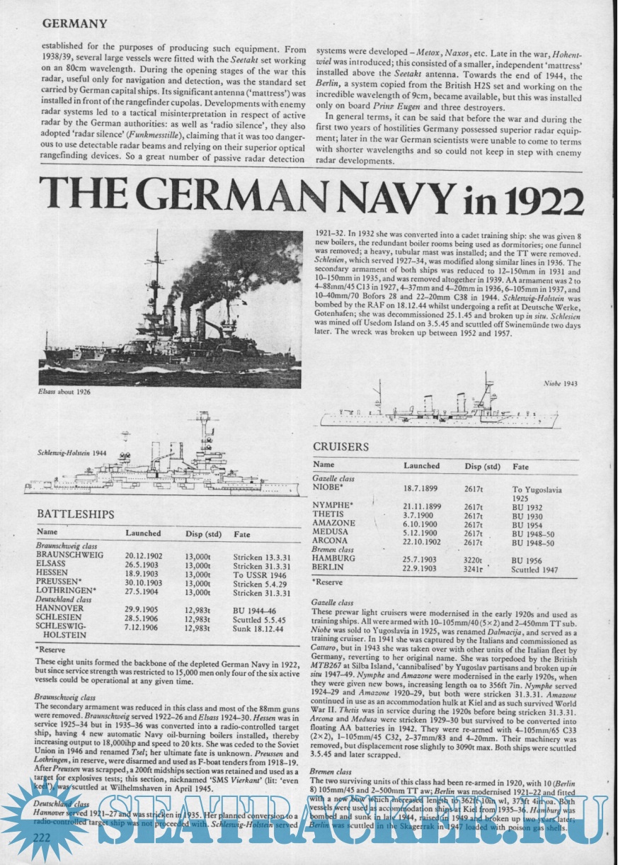 Year: 1980 Language: english Author: Gardiner R., Chesneau R. Genre: Reference book Publisher: Naval Inst Pr Edition: 1st ISBN: 0870219138 Format: PDF Quality: Photo of pages Pages count: 464 Description: 'Conway's All The World's Fighting Ships' series presents an international history of iron and steel warships from the first ironclad to the modern warship. The acclaimed series involved a major revaluation of published information and the wide scale use of unpublished sources. Every ship is covered, type by type and class by class and the series places the detailed and precise data of the ships into the wider context through introductions and extended texts allowing the reader to trace important technical and design developments and understand how and when naval developments took place. The text is complemented by photographs and/or accurate scale drawings for most classes included. This volume lists all the significant warships built between the Washington Treaty and the end of the wartime construction programmes.