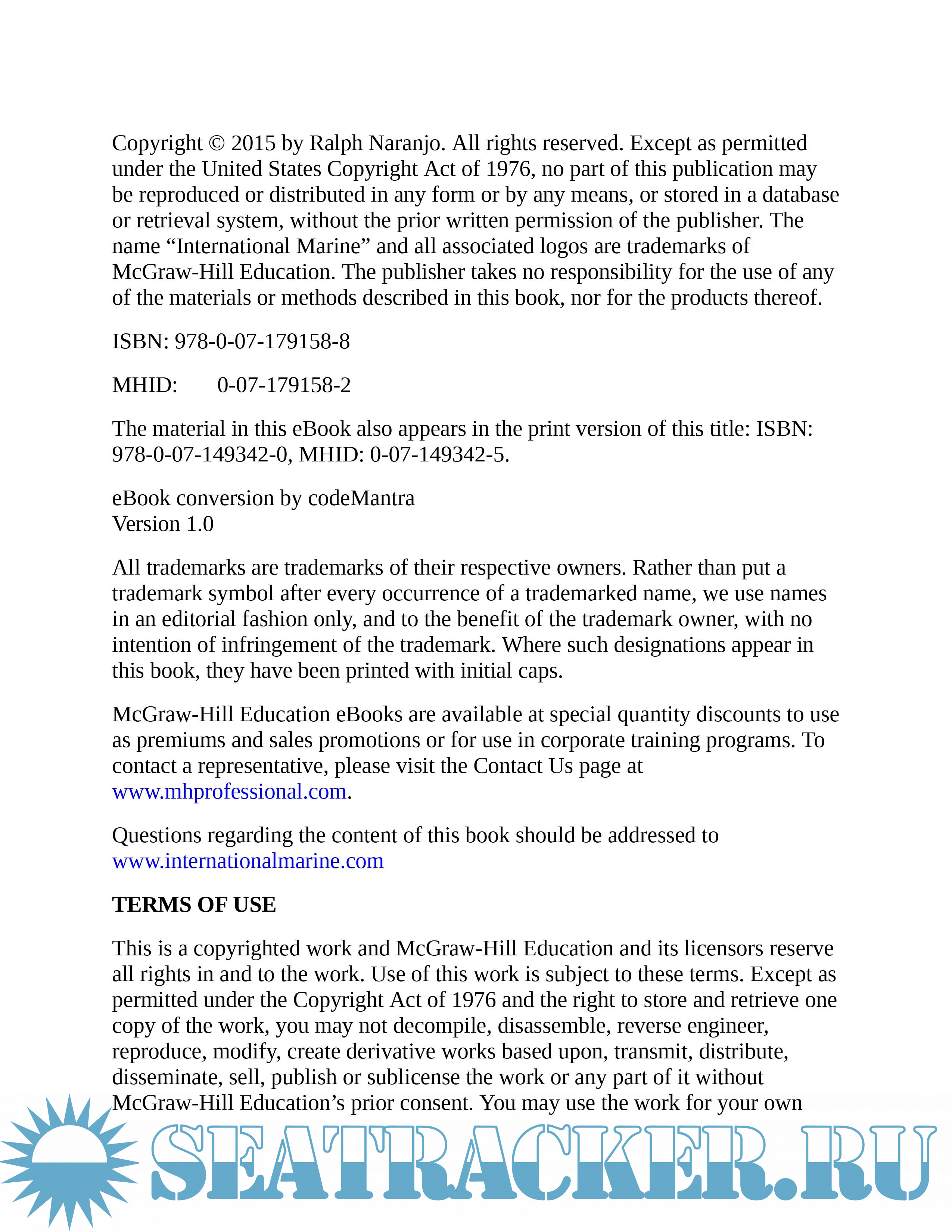 Year: 2015 Language: english Author: Ralph Naranjo Genre: Manual Publisher: McGraw-Hill Education ISBN: 978-0-07-179158-8 Format: EPUB/PDF Quality: eBook Pages count: a lot Description: Wind, waves, weather, and water demand the practiced art of seamanship... Each time a sailboat casts off its docklines the sailor enters a marine realm that demands knowledge, preparedness, vigilance, and coolheadedness--these qualities are the foundation of good seamanship. Both an art as well as a science, seamanship is also the mastery of numerous practical details, from the best choice of line for a jib sheet to an accurate assessment of the passage of a deep low-pressure system. Around-the-world sailor Ralph Naranjo--technical expert, ocean racer, former Vanderstar Chair at the U.S. Naval Academy--delivers a priceless reference for anything that comes up while on the water, sharing all the knowledge today's sailors need to "hand, reef, and steer"--an enduring reference to the collective skills of the bluewater sailor. Naranjo's vast knowledge is supported by real-life examples of sailing mishaps, sample itineraries, vibrant photos, as well as first-hand accounts and sidebars from top sailors and marine experts, including Shelia McCurdy, Chuck Hawley, Lee Chesneau, and Paul Miller, N.A. Seamanship is a dynamic art, demanding full attention from the sailor amidst a constant flow of information and knowledge. The Art of Seamanship will improve your problem-solving skills, whether daysailing around the harbor or voyaging around the world... Additional info: PDF file was converted from EPUB, so it's highly likely not match to print version )