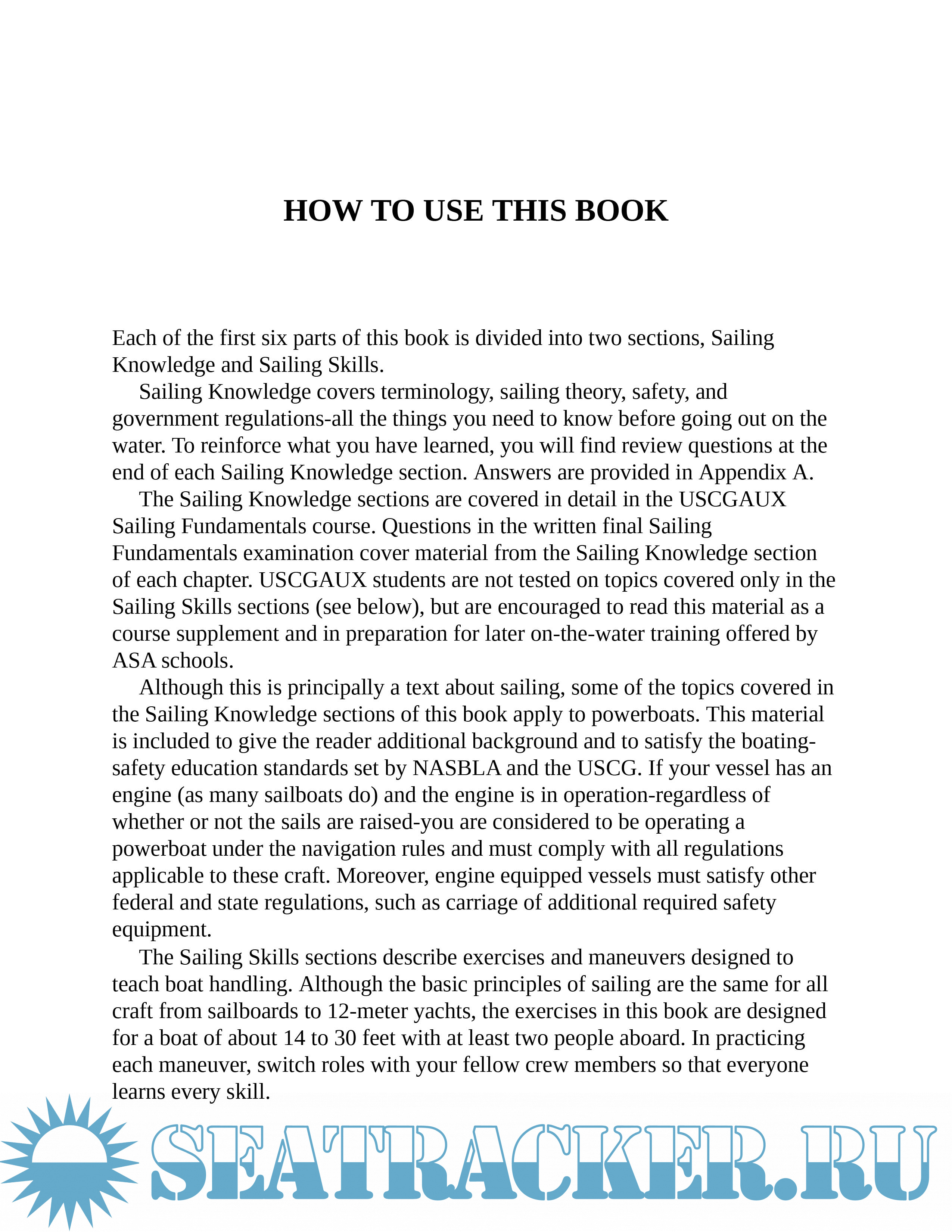 Description: The official learn-to-sail manual of the American Sailing Association and the United States Coast Guard Auxiliary, with over 150 line drawings and photographs.