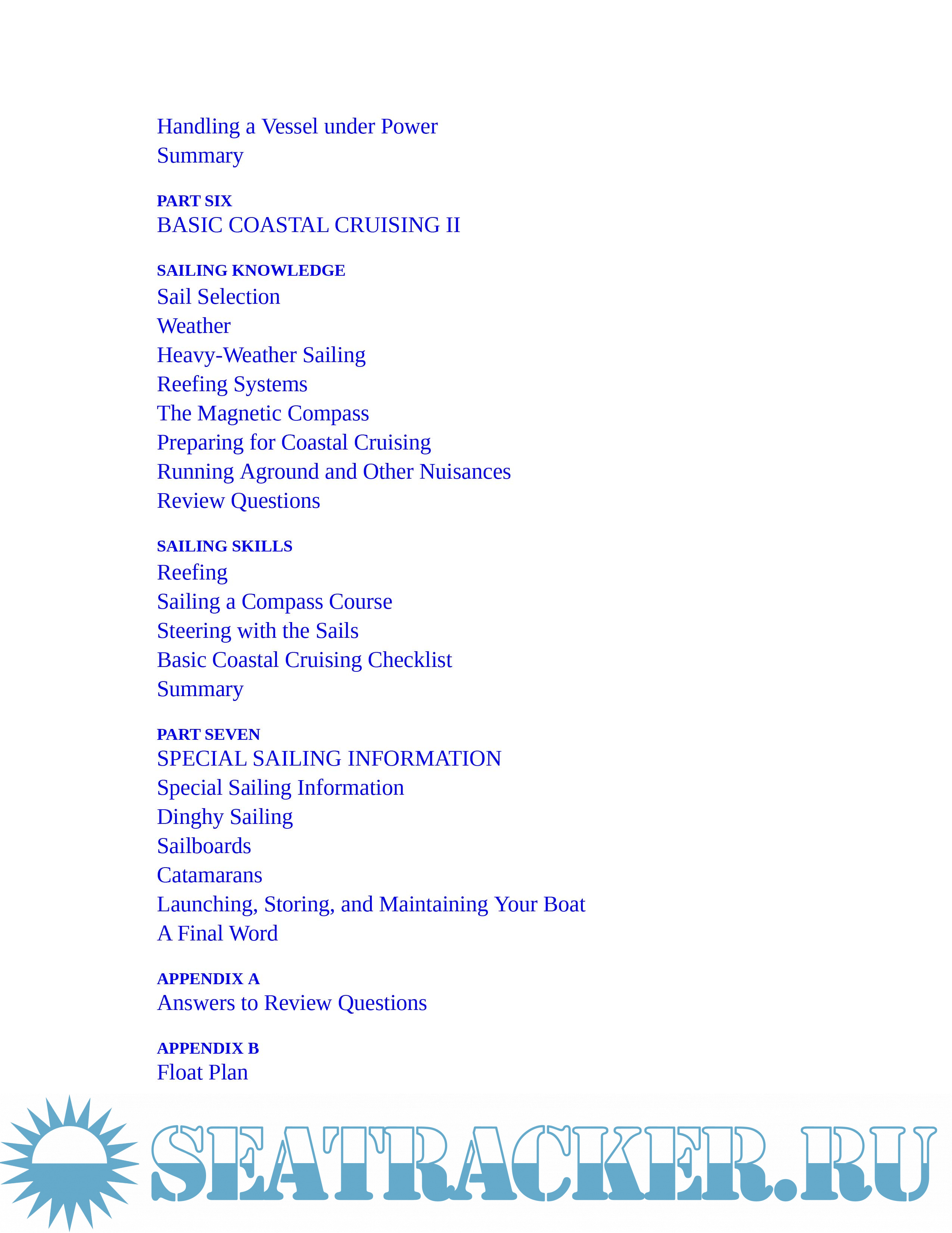 Written by America’s foremost instructional authority, the new edition of Sailing Fundamentals is the official learn-to-sail manual of the United States Coast Guard Auxiliary. Sailing Fundamentals is also used in the programs of yacht clubs, colleges, and sailing groups around the country. Unlike many sailing books, which can reflect the biases and idiosyncrasies of their authors, this book has been extensively pretested to ensure that it offers the fastest, easiest, most systematic way to learn basic sailing and coastal cruising.