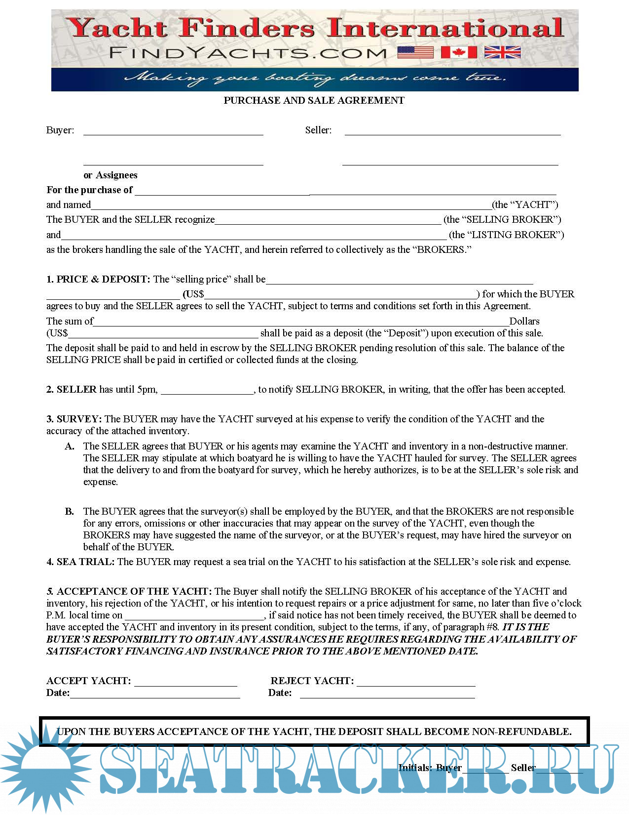 2. Yacht Purchase and Sale Agreement - Yacht Finders International – 5 pages